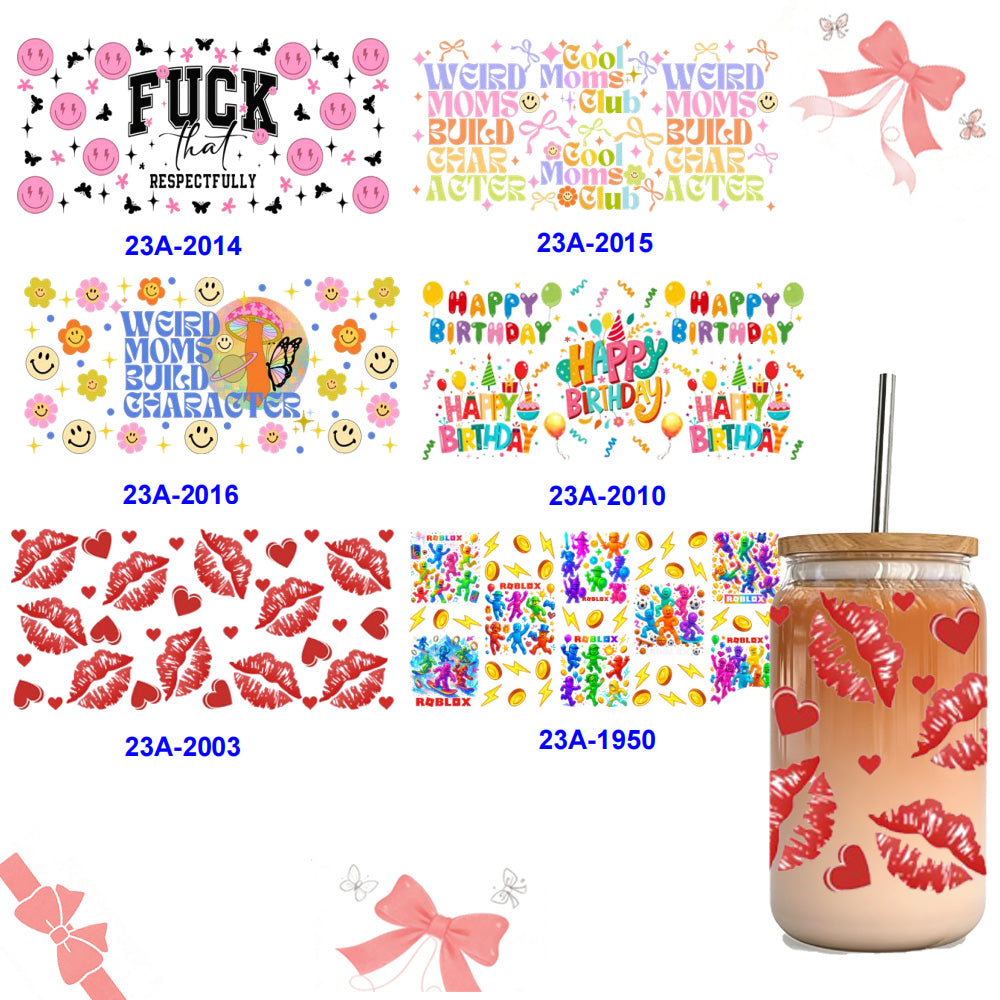 Wholesale 1pcs/5pcs Lipprint Smiley Face Balloon English Phrase 16oz Cup UV DTF Wraps