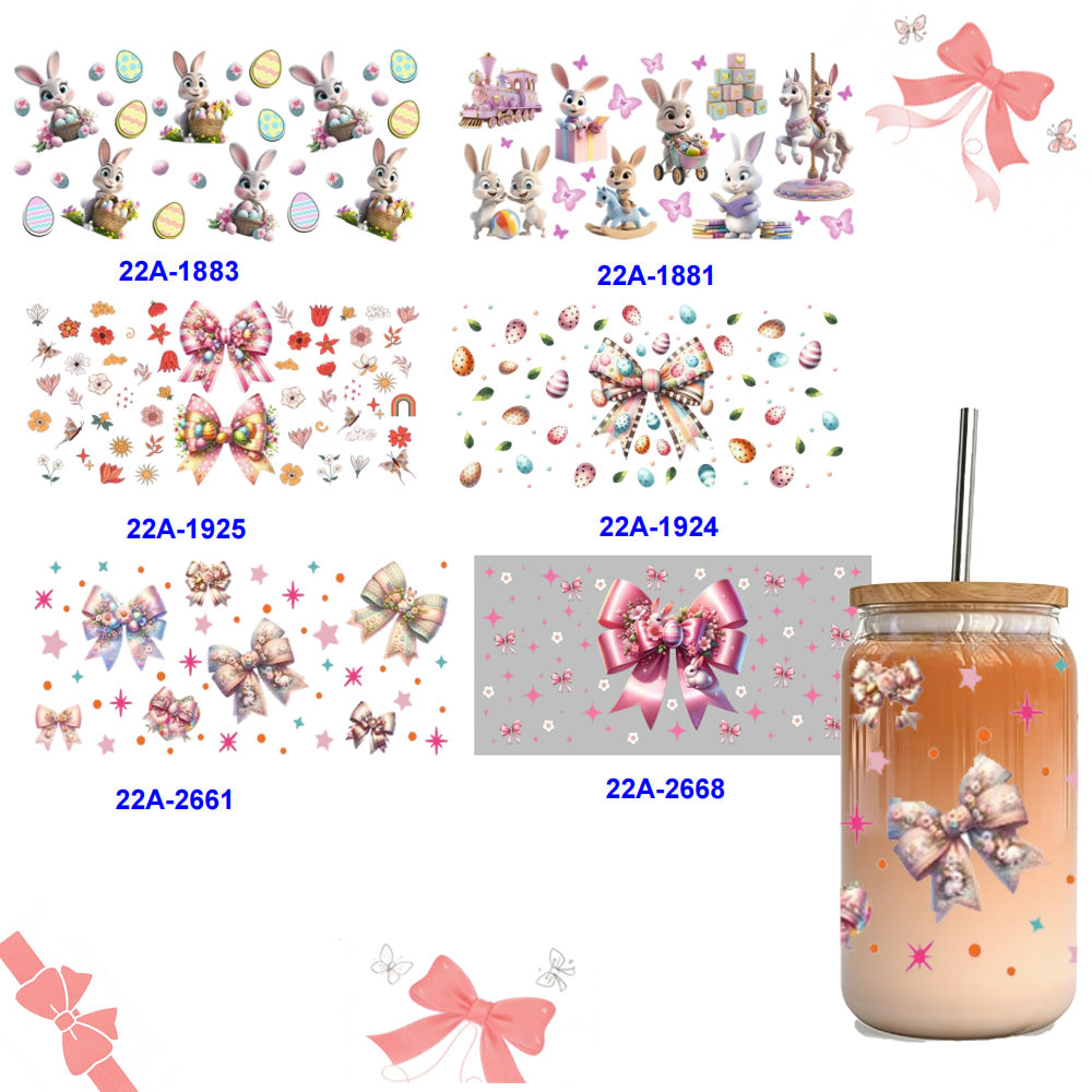 Wholesale 1pcs/5pcs Flower Bow Rabbit Ear Easter Egg 16oz Cup UV DTF Wraps