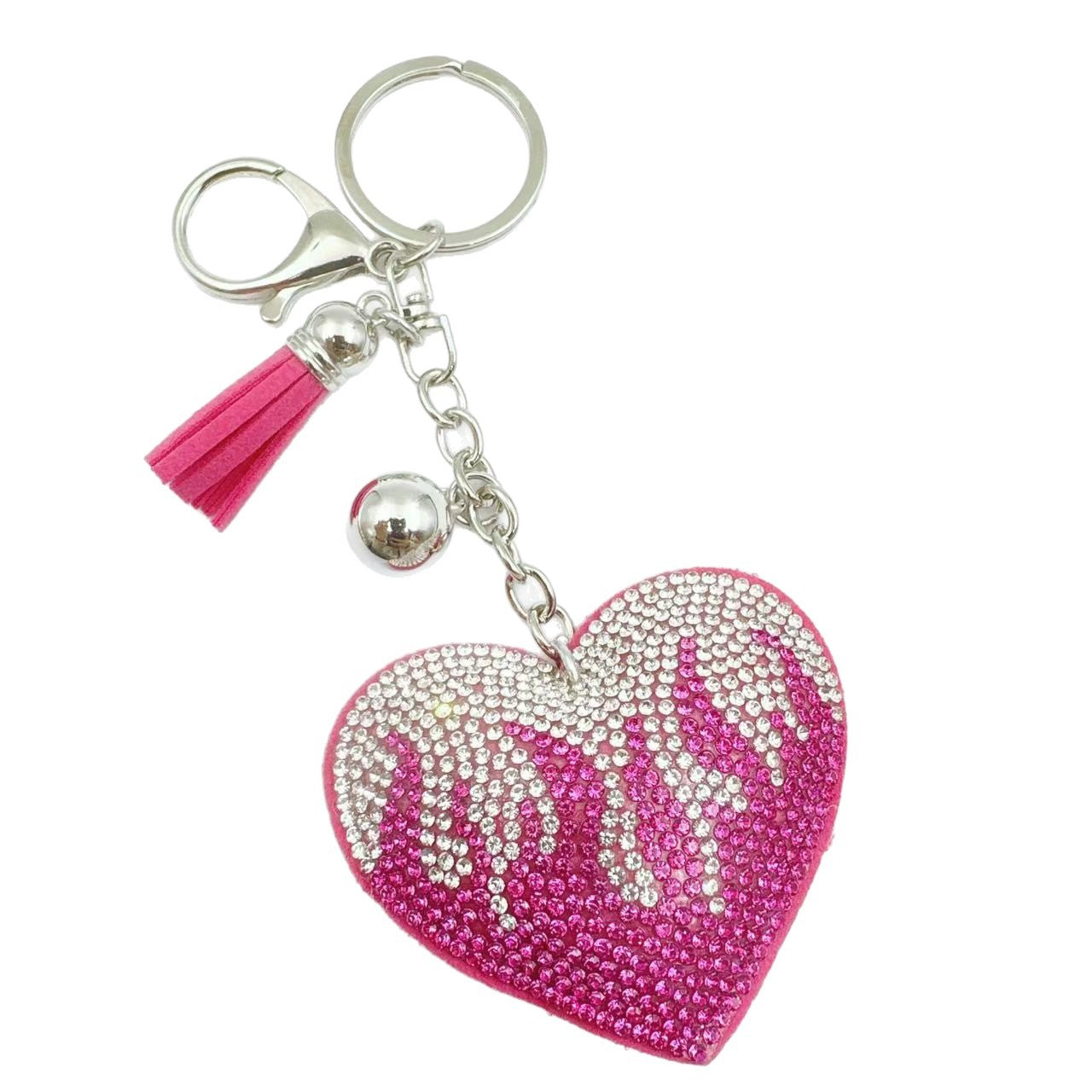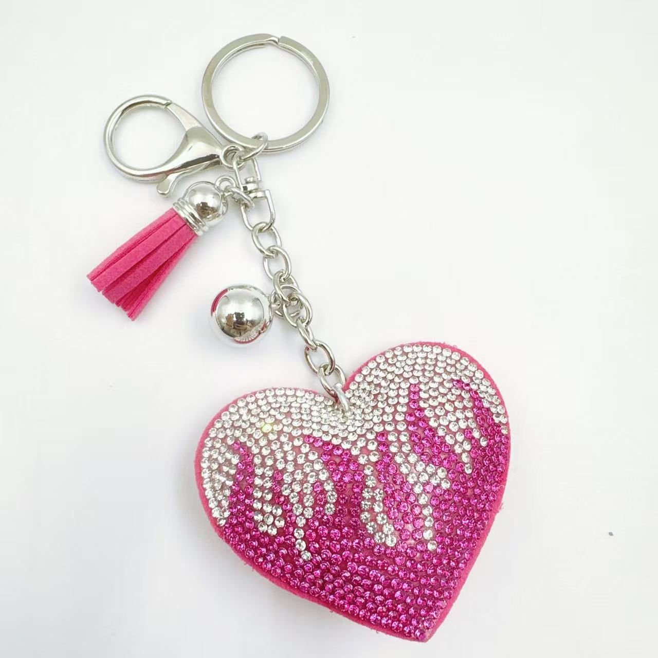 Wholesale Cute Rhinestone Flame Love Tassel Flannel Keychain