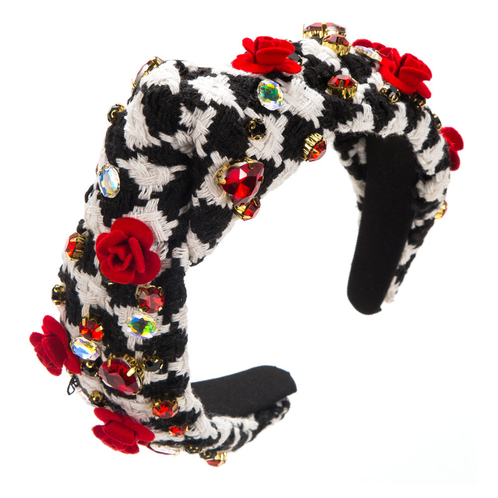 Wholesale Black and White Fabric Hand Sewn Glass Diamond Flower Valentine's Day Hair Bands