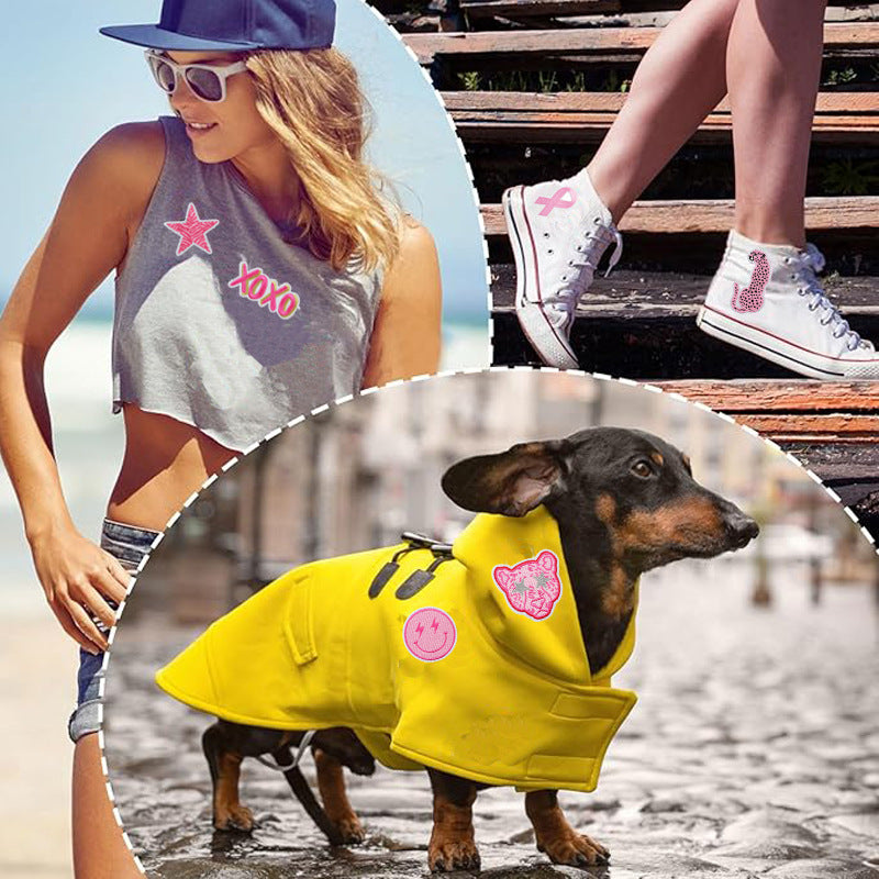 Wholesale Valentine's Day Pink Cheetah Rainbow Smile Embroidery DIY Patches