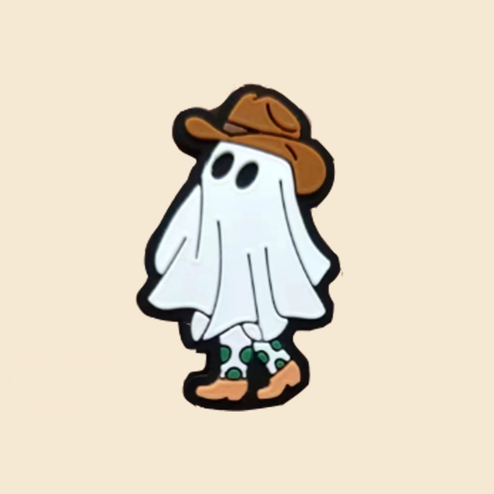 Wholesale 10pcs Cartoon Western Style Cowboy Hat Ghost Pattern Silicone Beads
