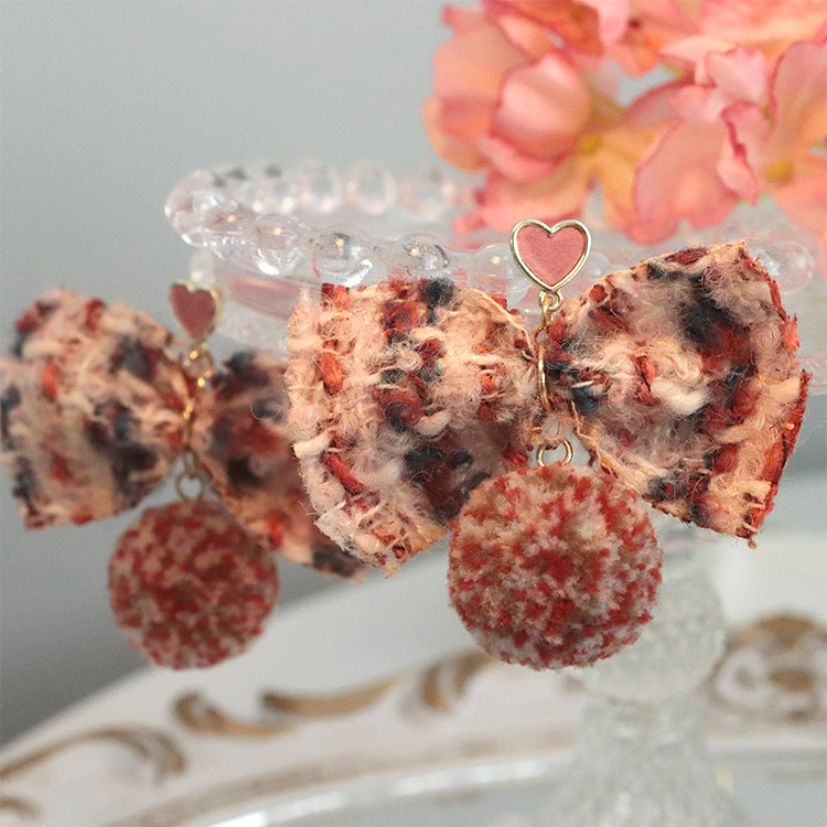 Wholesale Autumn and Winter Plush Fabric Bow Love Earrings