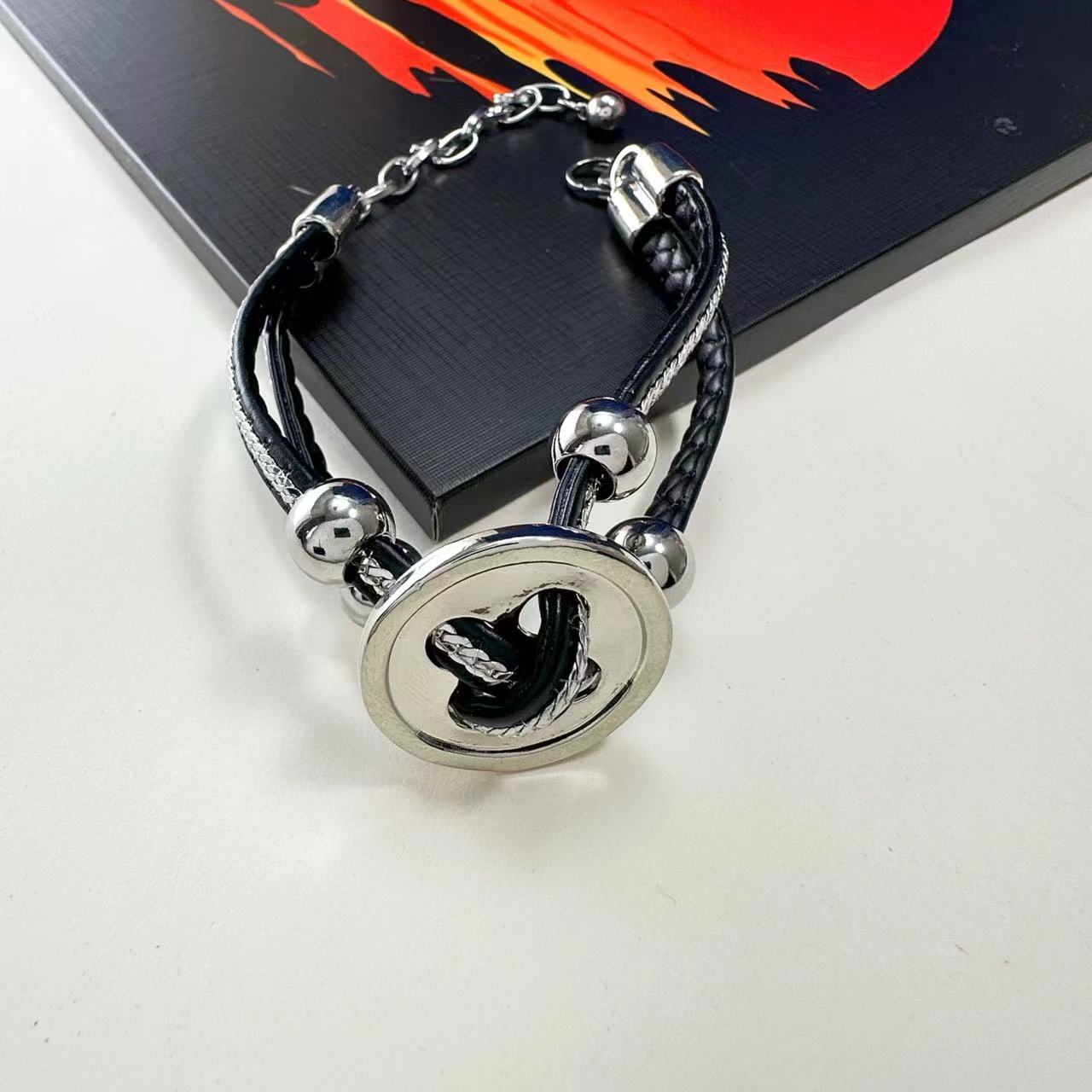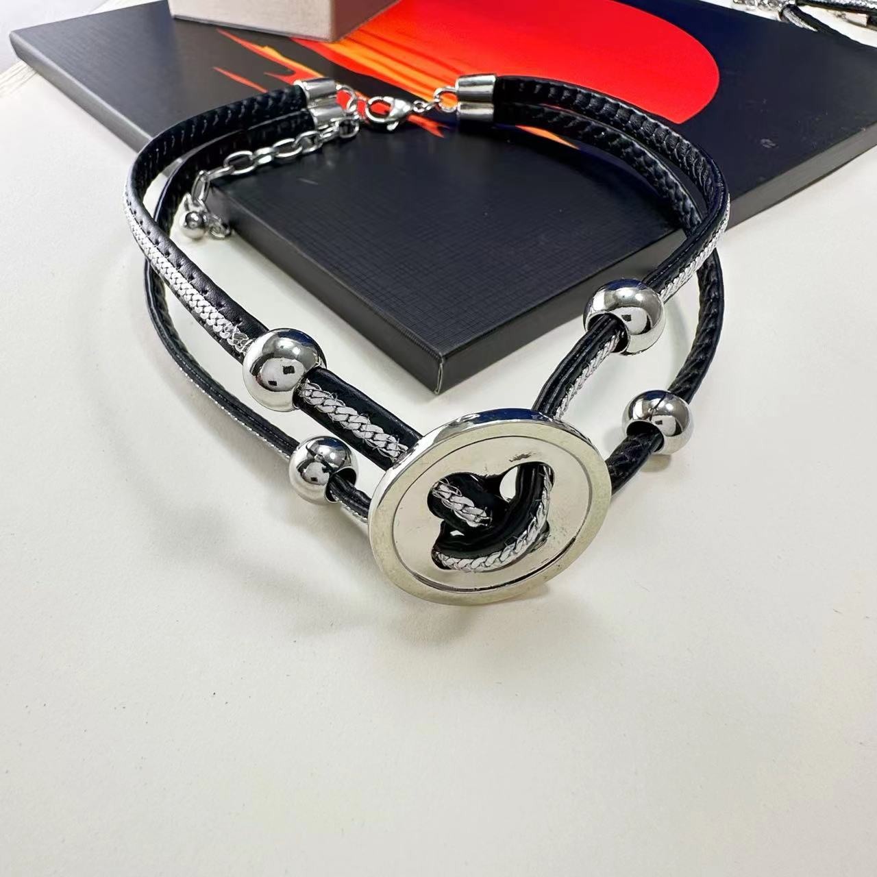 Wholesale Button Leather Cord Clavicle Chain Bracelet