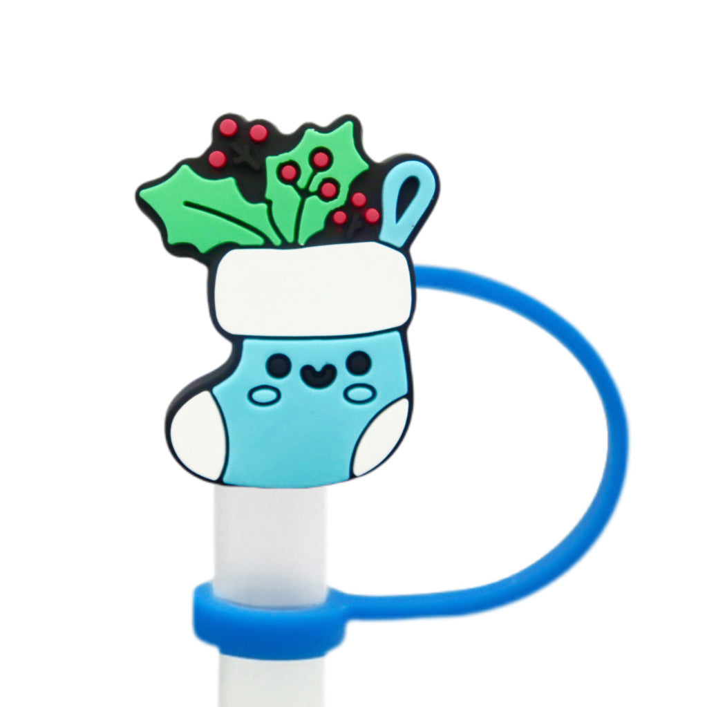 Wholesale 10pcs Cartoon Winter Snowman 8/10MM Milk Tea PVC Dustproof Straw Cover