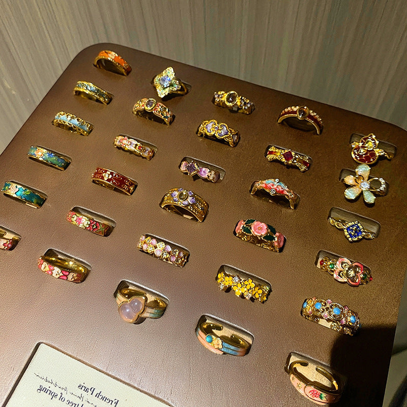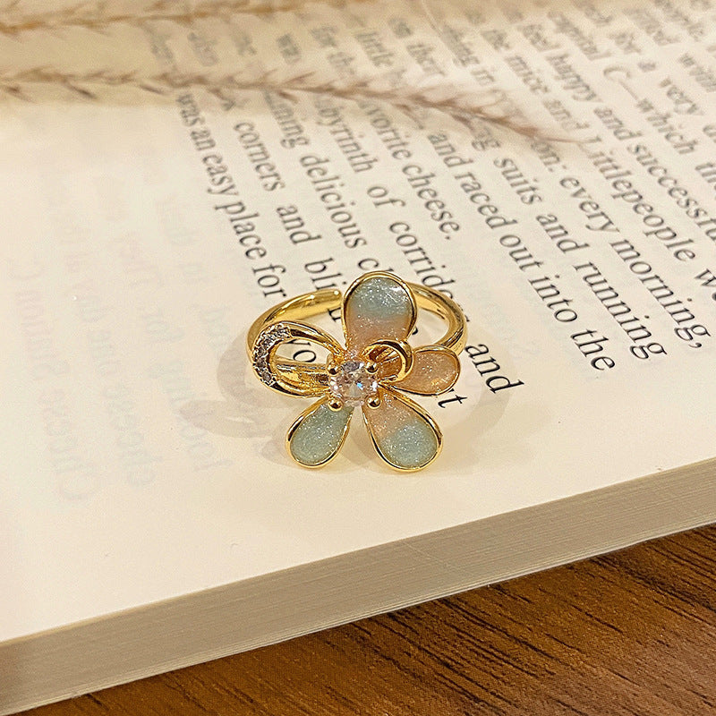 Wholesale Flower bud colored enamel drip pattern ring