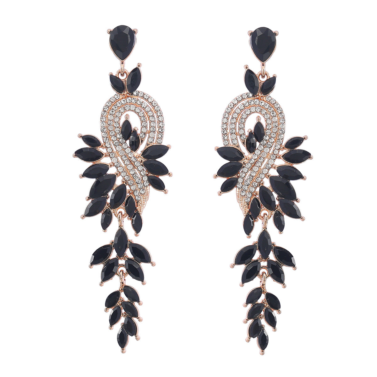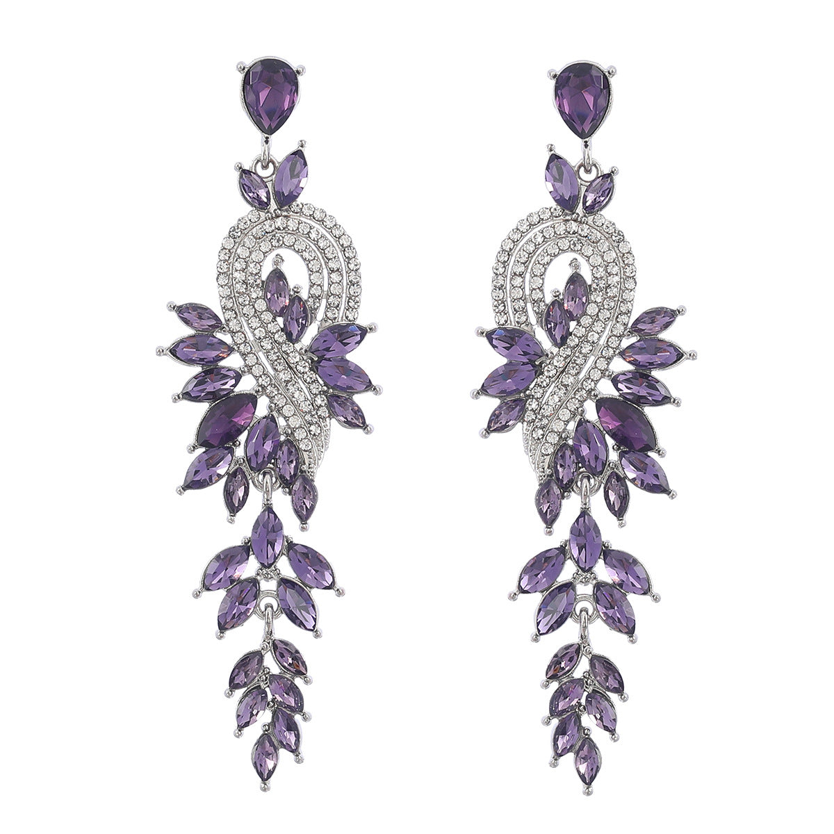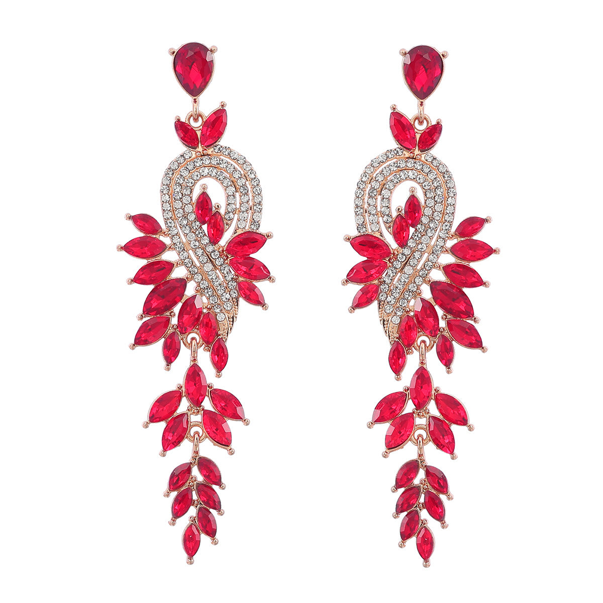 Wholesale Geometric tree leaf colored diamond earrings with inlaid rhinestones
