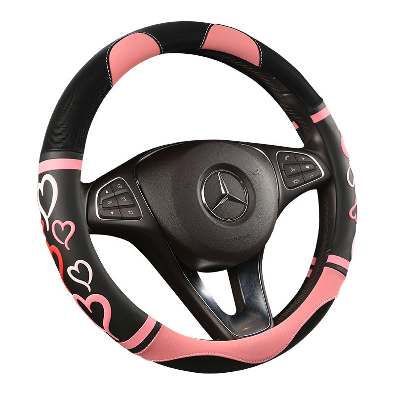 Wholesale Love Leather Hot Stamping Color Matching Medium Size Anti-slip Car Steering Wheel Cover