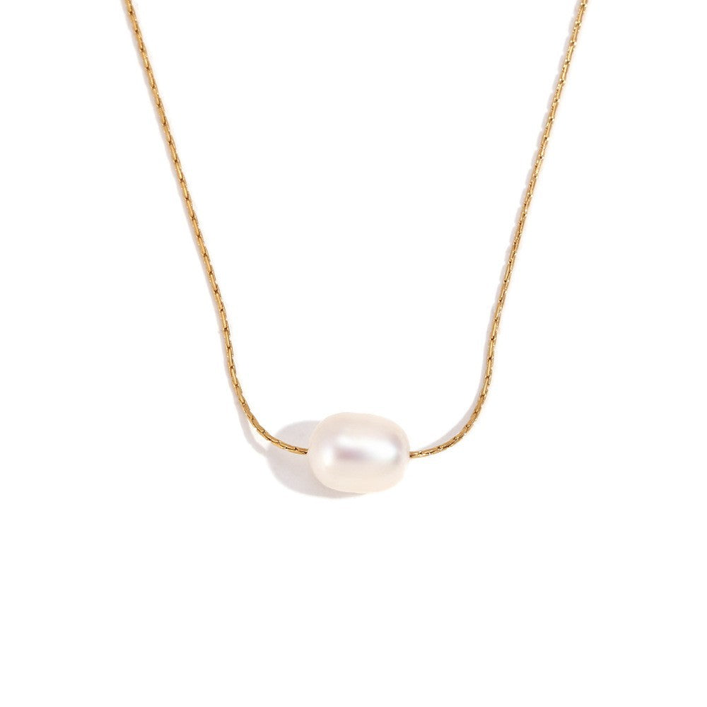 - Simple freshwater pearl thin chain-gold