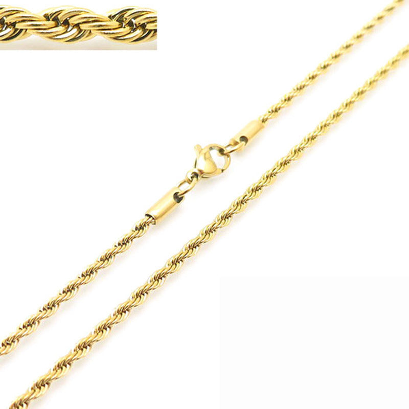 Wholesale Personality Hip-hop Fashion Button Rope Plain Chain Titanium Steel Multi-color Multi-size Necklaces