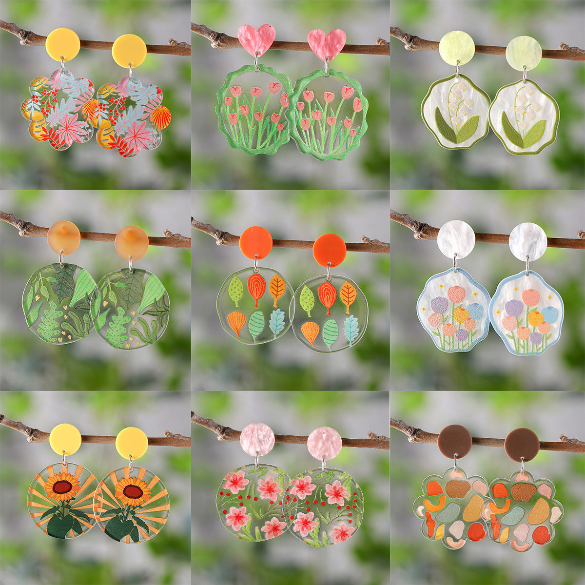 Wholesale Spring and summer flower leaf pendant earrings acrylic earrings
