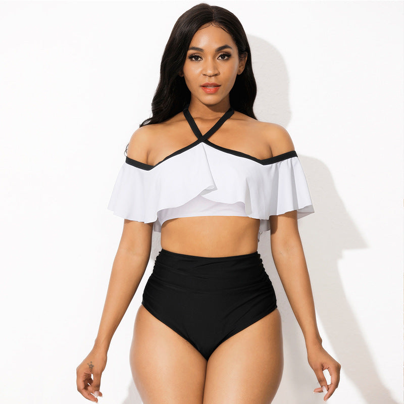 Wholesale Two-piece Swimsuit High Waist Ruched Sexy Swimwear Polyester