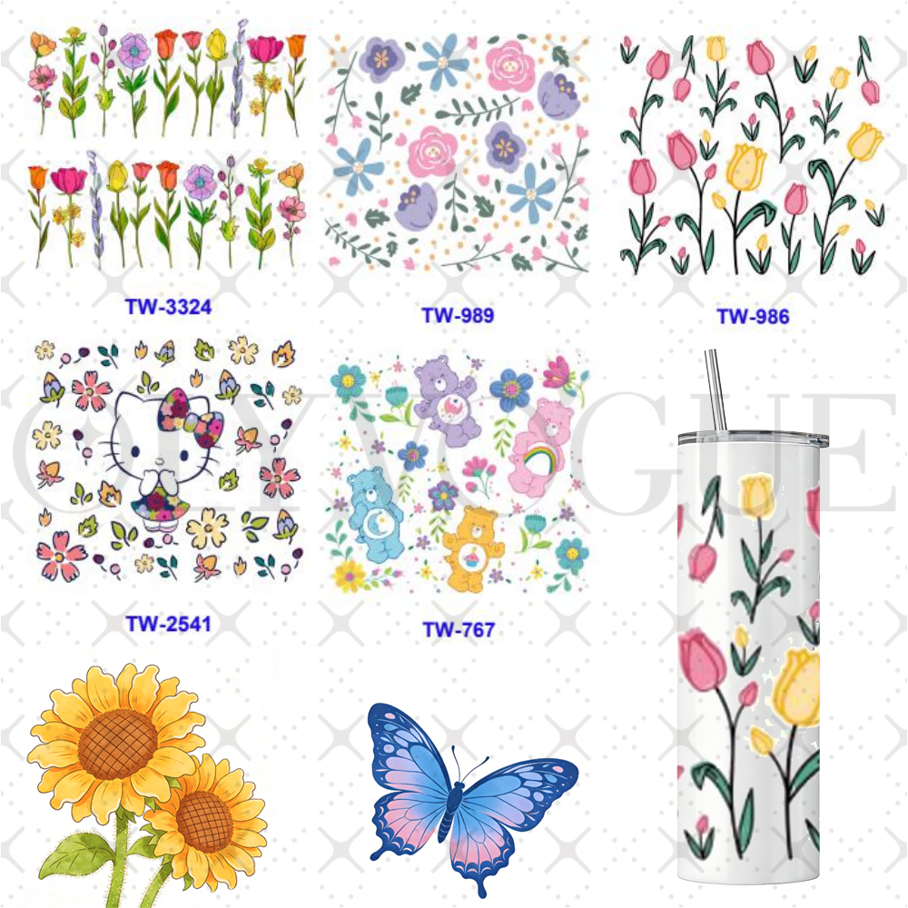 Wholesale 5pcs Colorful Cartoon Flowers 20oz Cup UV DTF Wraps OLY Exclusive