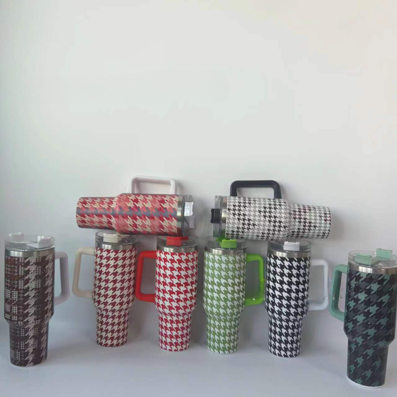 Wholesale Tumbler Houndstooth Stainless Steel Double-layer Handle Insulation 40oz Ice Cup
