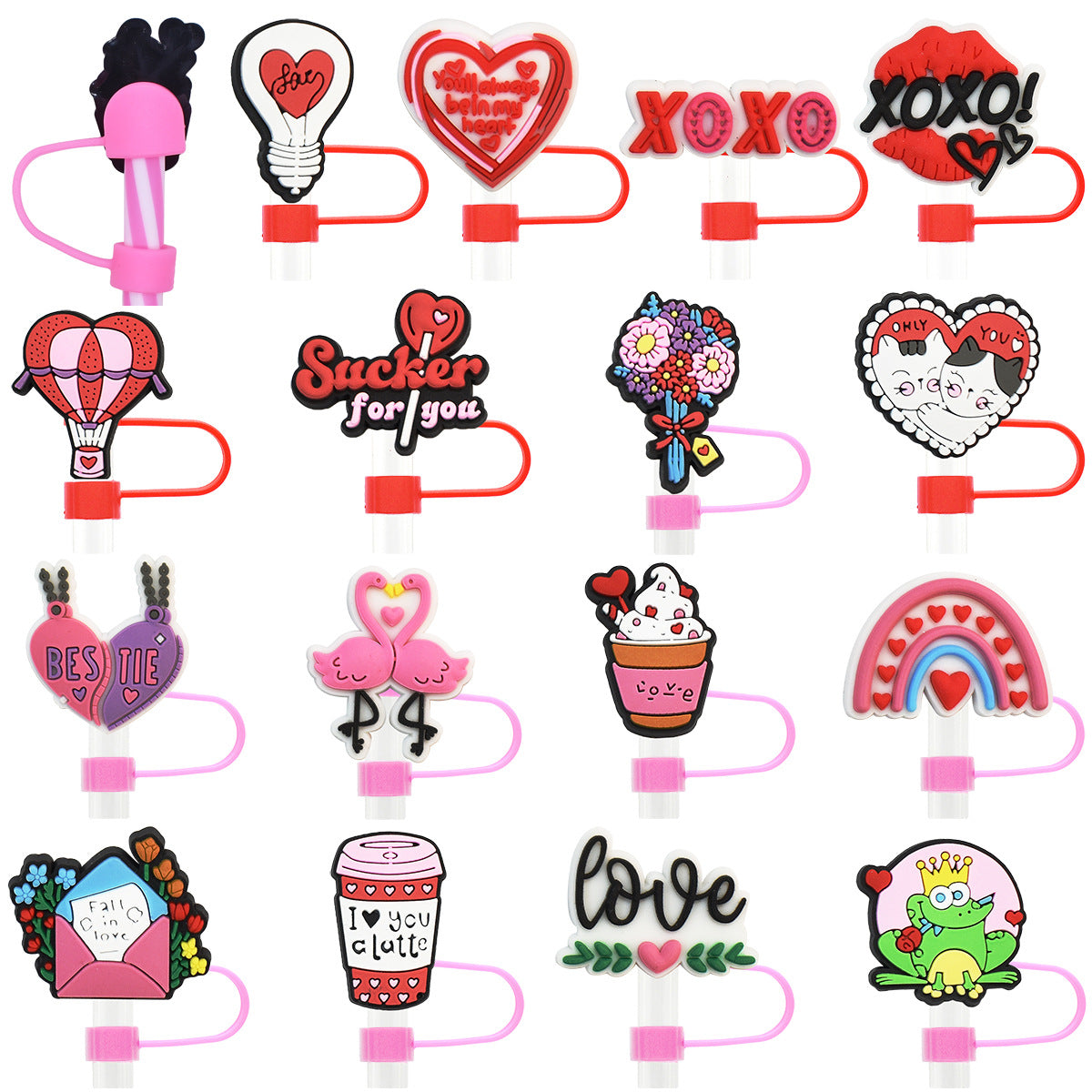 Wholesale Random 100pcs PVC Valentine's Day Rainbow Love Straw Stoppers
