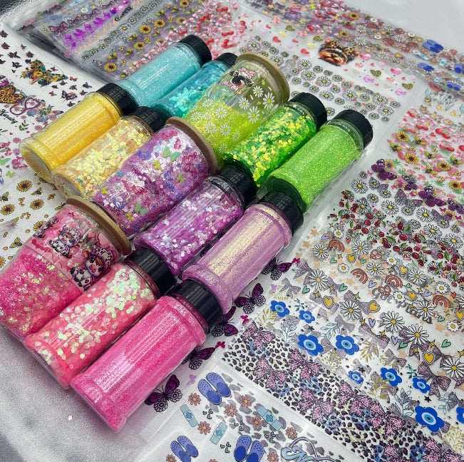 Wholesale Snowgloble 3oz Double Layer Shot Glass One Sets Including One Snowgoble Glass and 2 Boxes Sequin Glitter Filler and One Straw and One Funnel Filling Tool and One Piece Random Style Matching UVdtf Sticker Sets