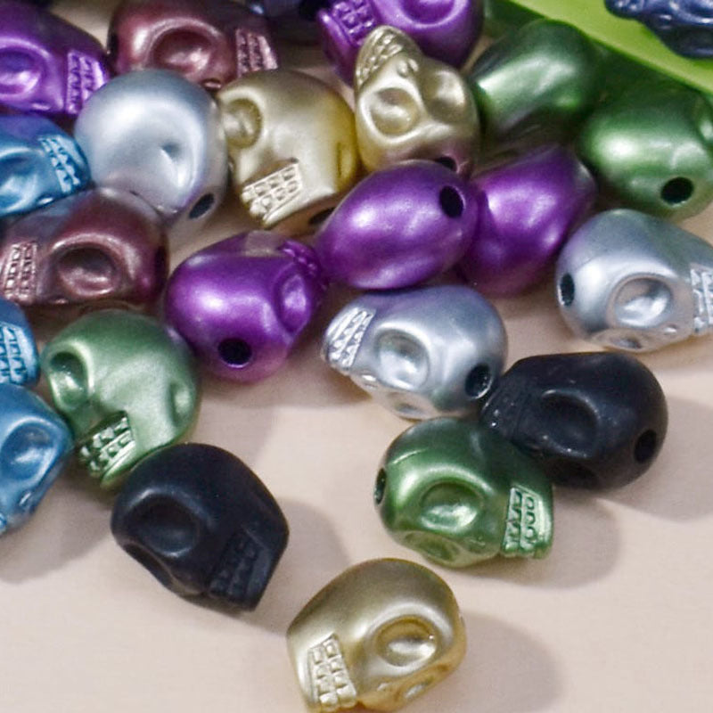 Wholesale 10-13mm Handmade Beaded Material Acrylic Color Black and White Skull Beads