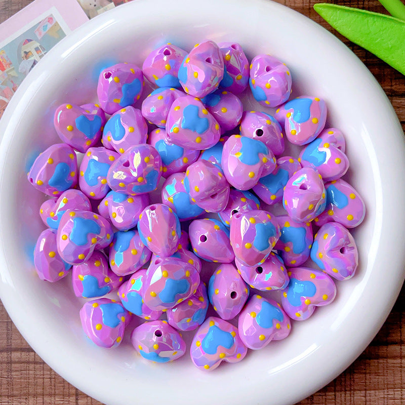 Wholesale Random 100pcs Acrylic Hand-painted Candy Heart Color Hollow Love Beads