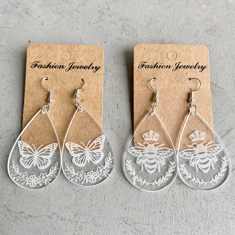 Wholesale 3pcs Transparent Acrylic Water Drop Bee Butterfly Laser Marking Popular Personality Earrings
