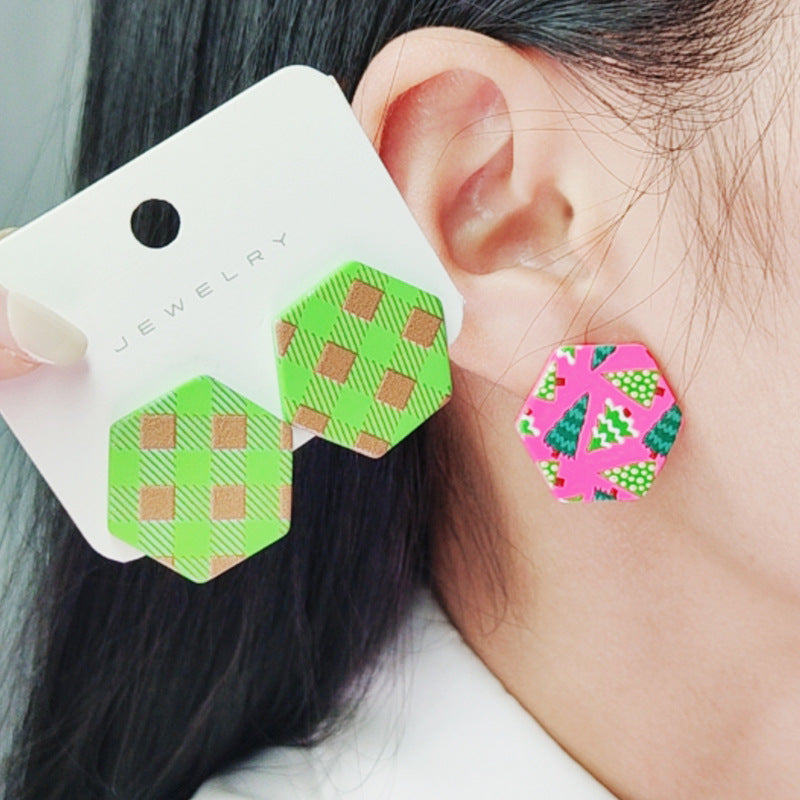 Wholesale Christmas Spray Painted Hexagonal Acrylic Earrings