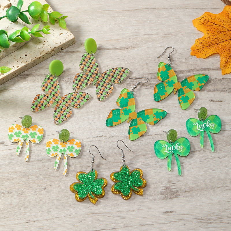 Wholesale St. Patrick's Day Acrylic Trefoil Butterfly Earrings