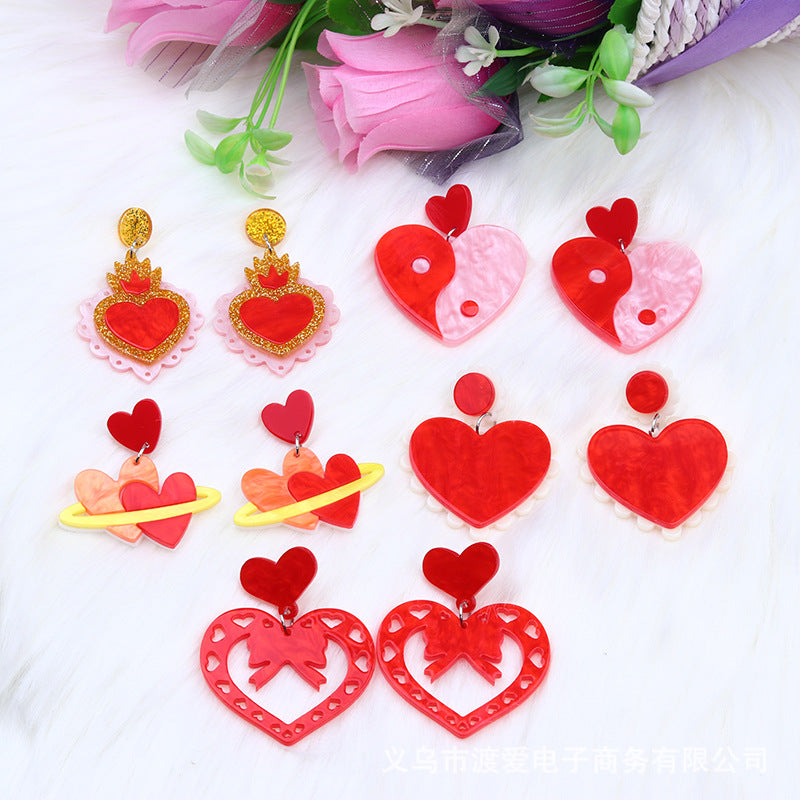 Wholesale Valentine's Day Heart Patchwork Acrylic Ear Studs
