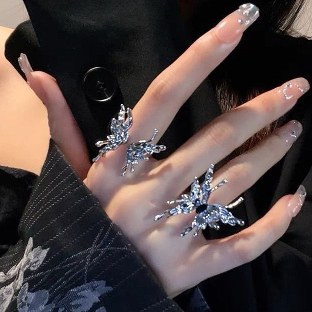 Wholesale S925 Silver Diamond Sapphire Adjustable Ring