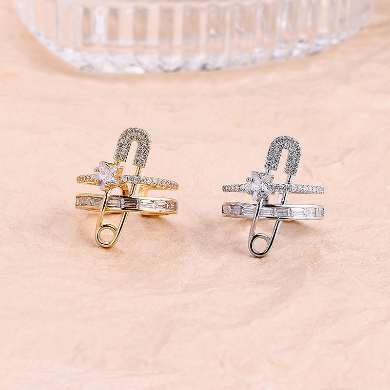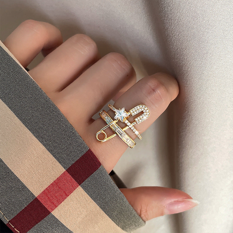 卸売ダイヤモンド象嵌ジルコン幾何学的な開口部の金属リング