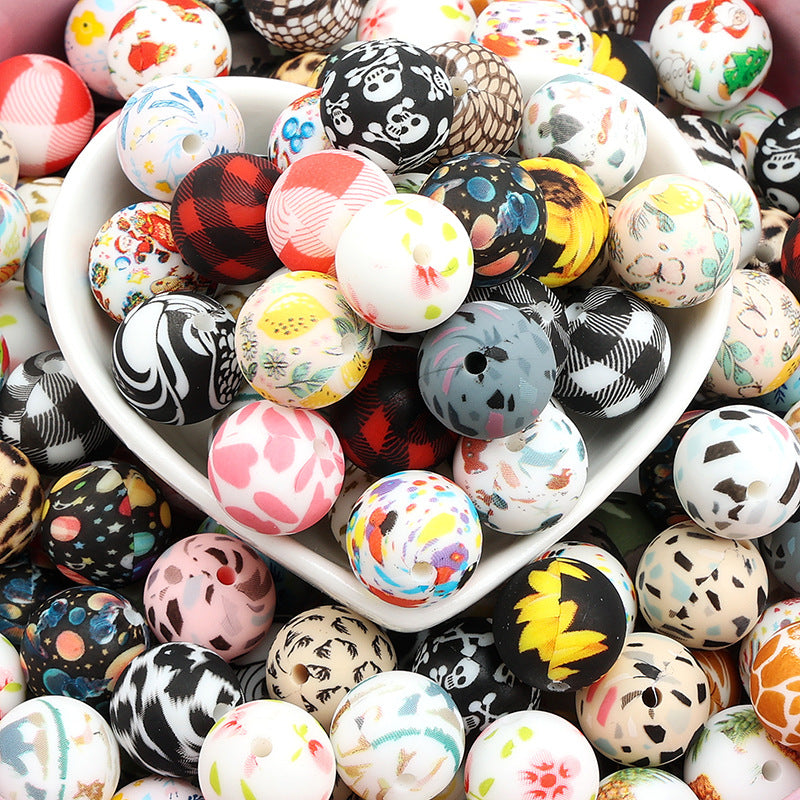 Wholesale 100pcs Color Water Transfer Printing Silicone Beads
