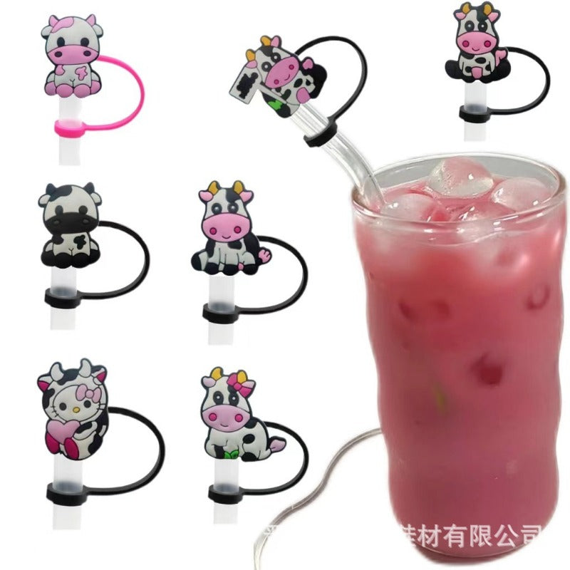 Wholesale 10pcs Cartoon Cow Children's Water Cup Dust and Spill Proof Straw Cover