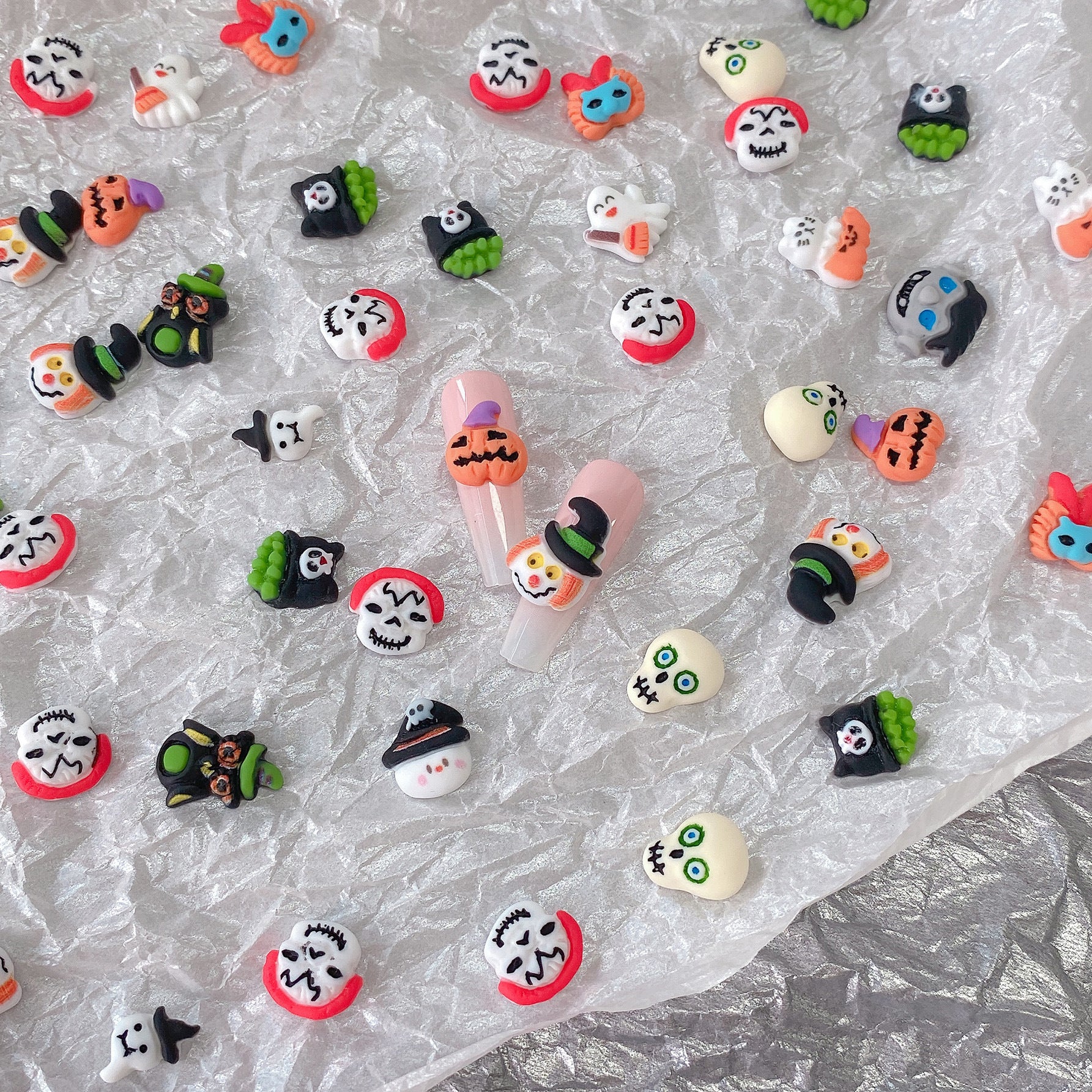 Wholesale 10PCS/Pack Halloween Little Ghost Pumpkin Resin Nail Decoration
