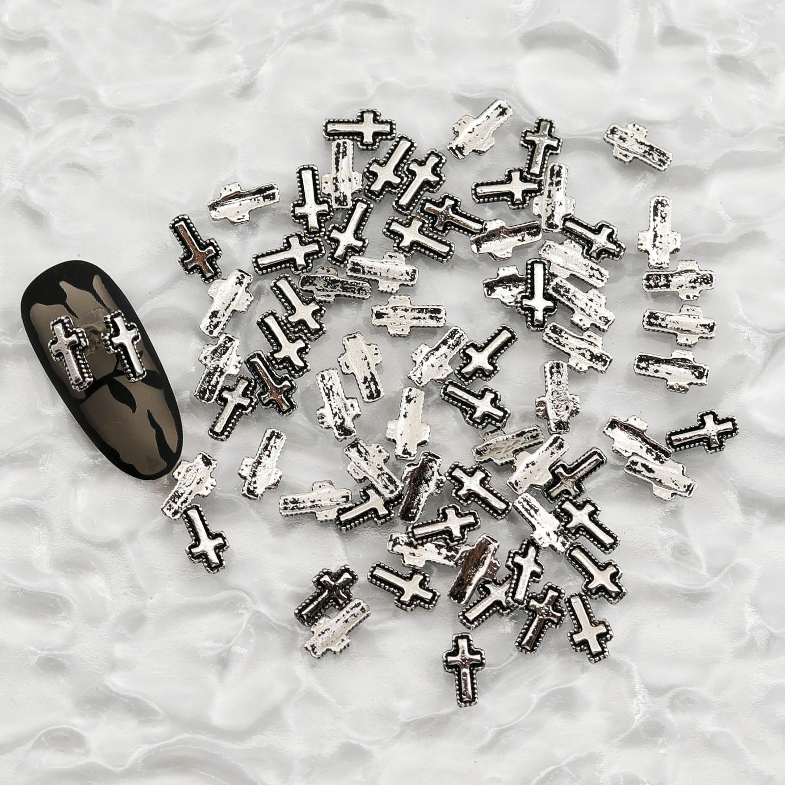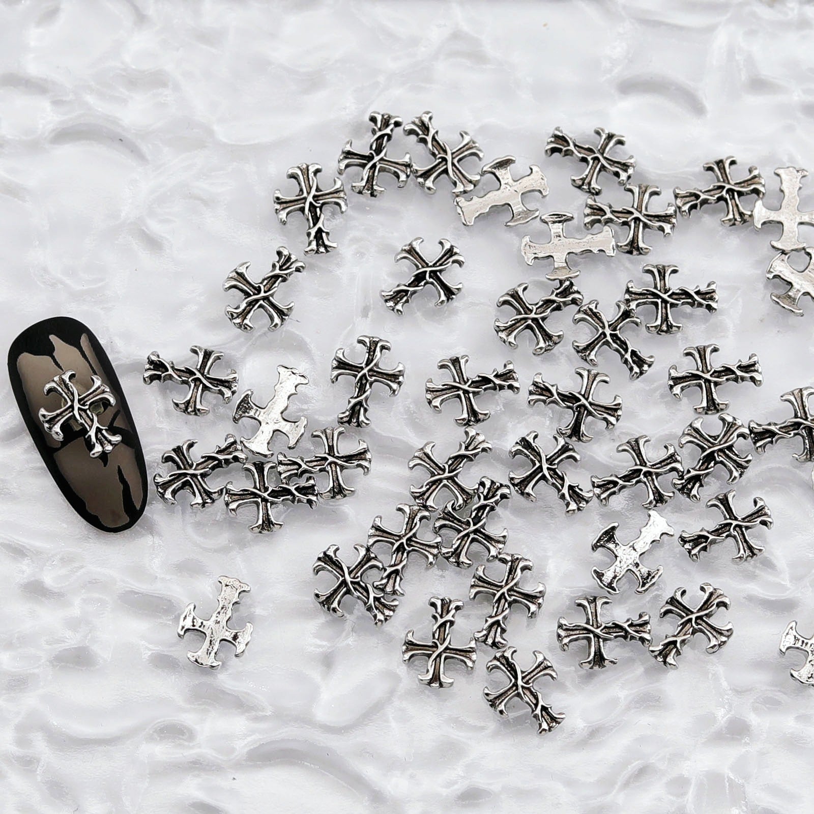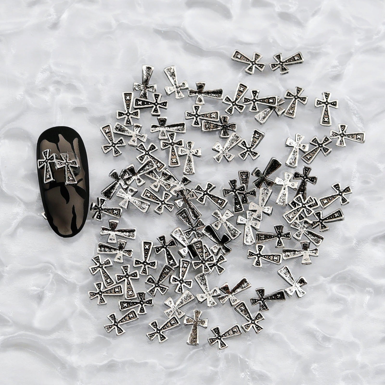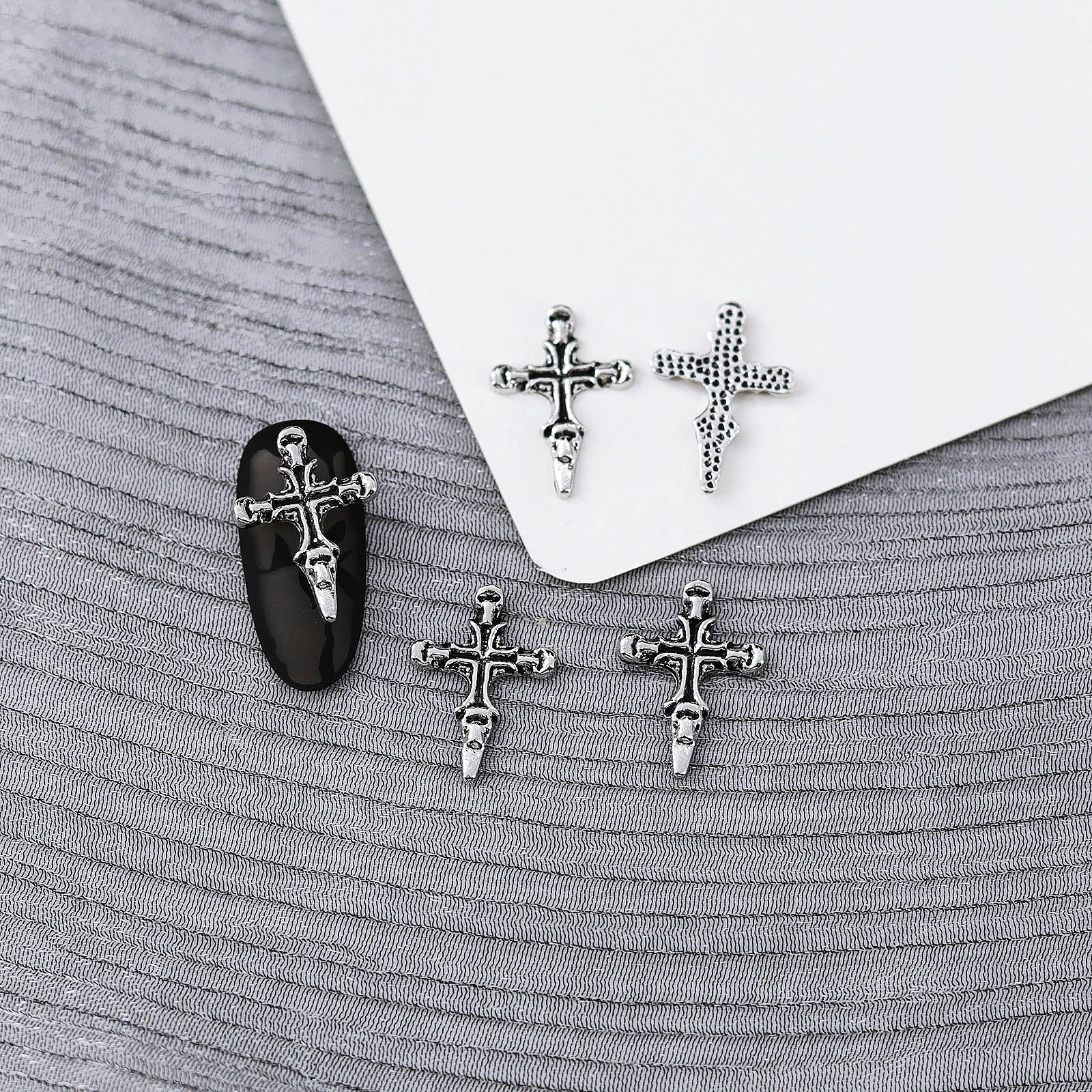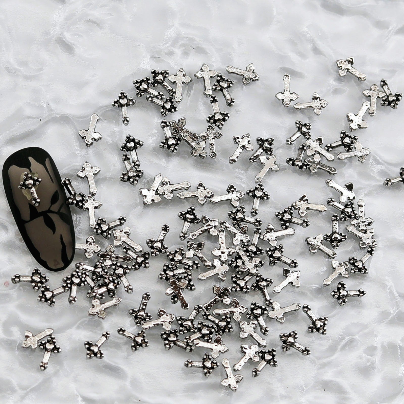 Wholesale 10pcs Retro nail accessories punk style cross dark silver metal nail accessories