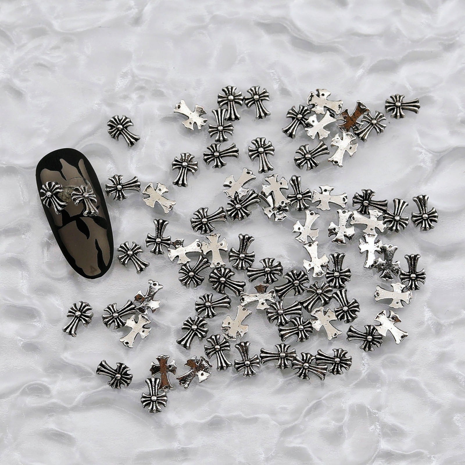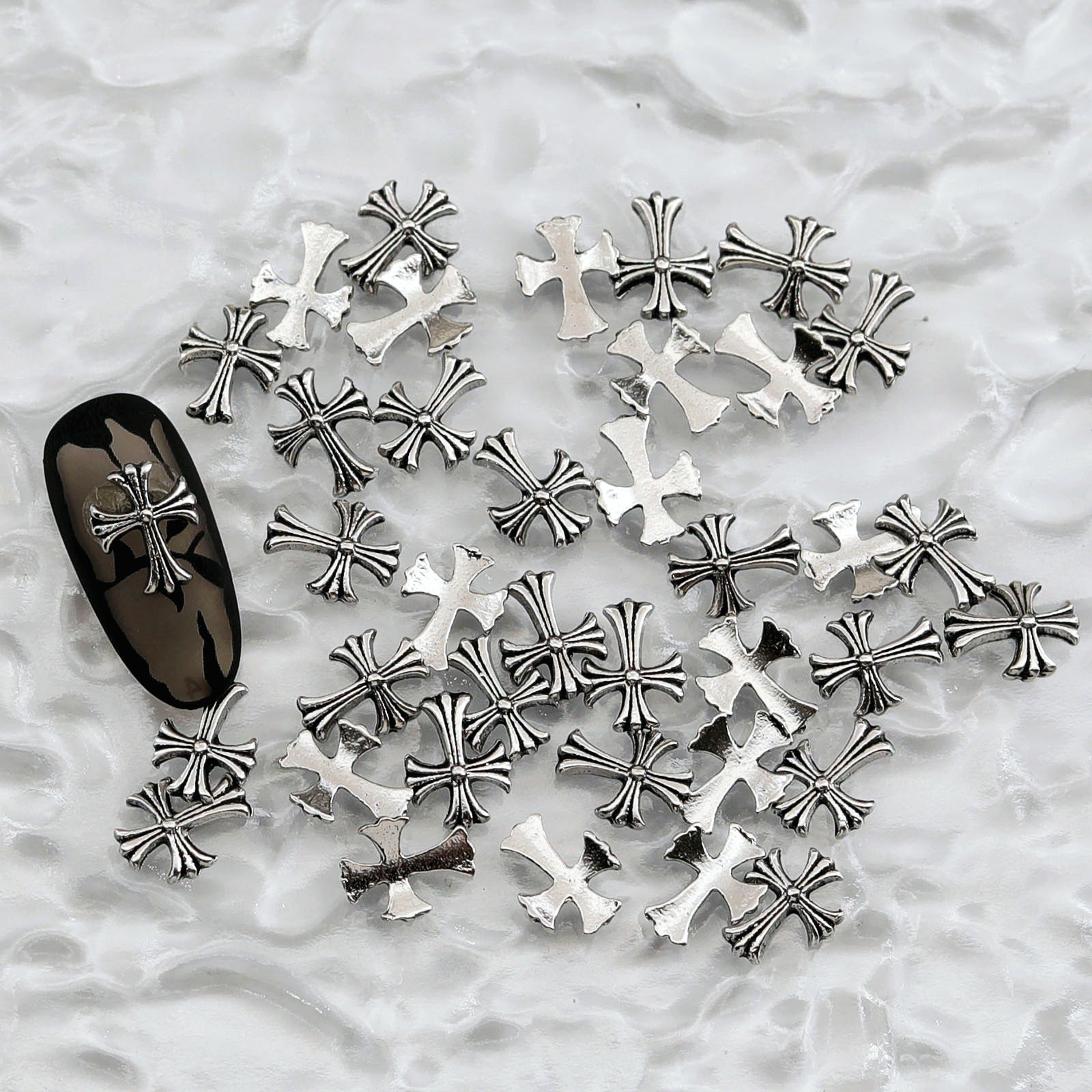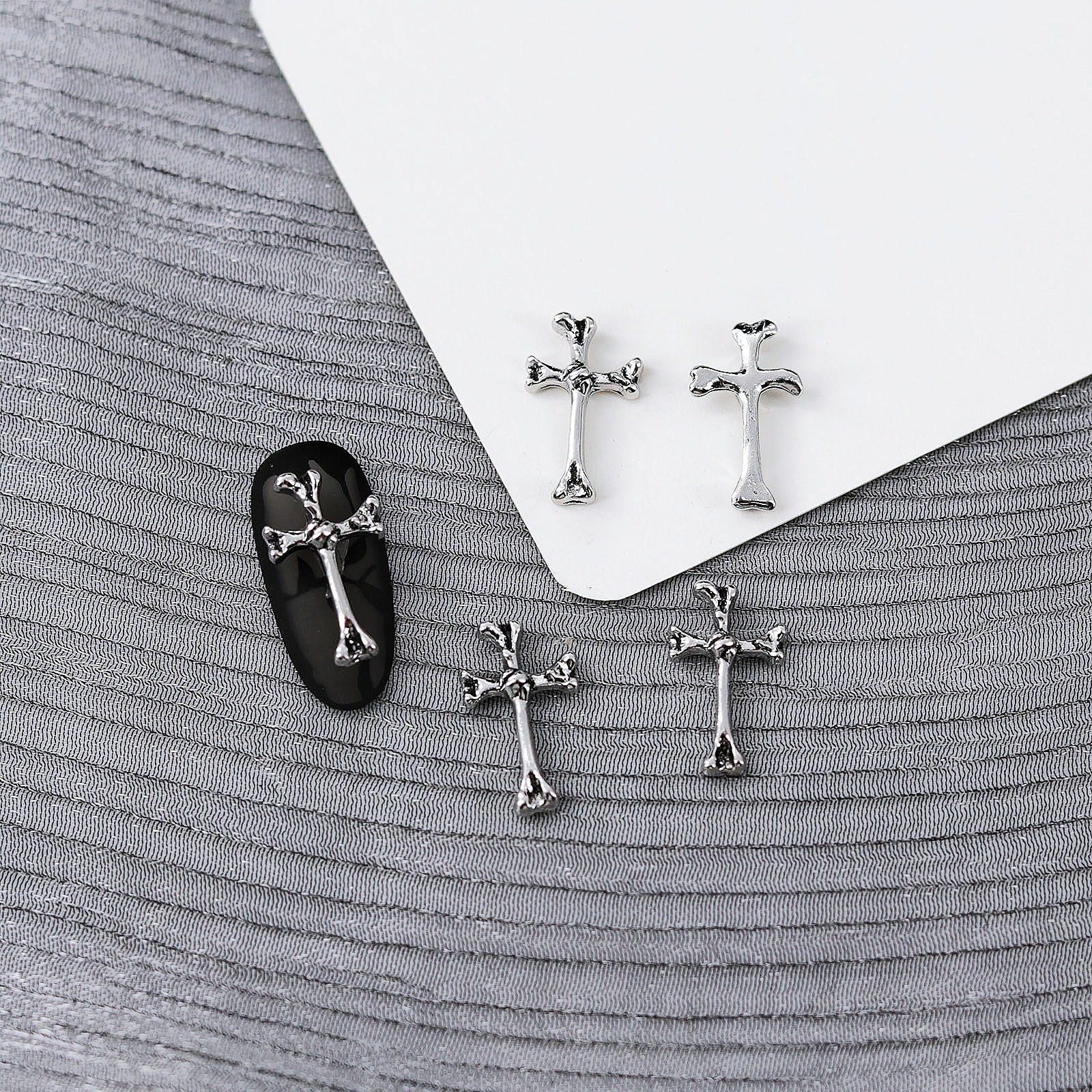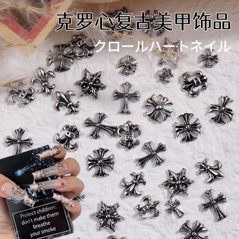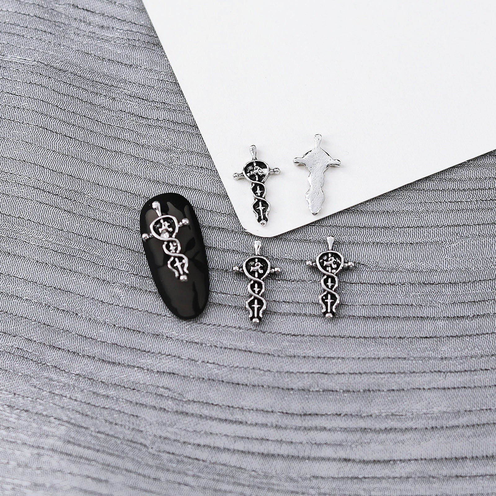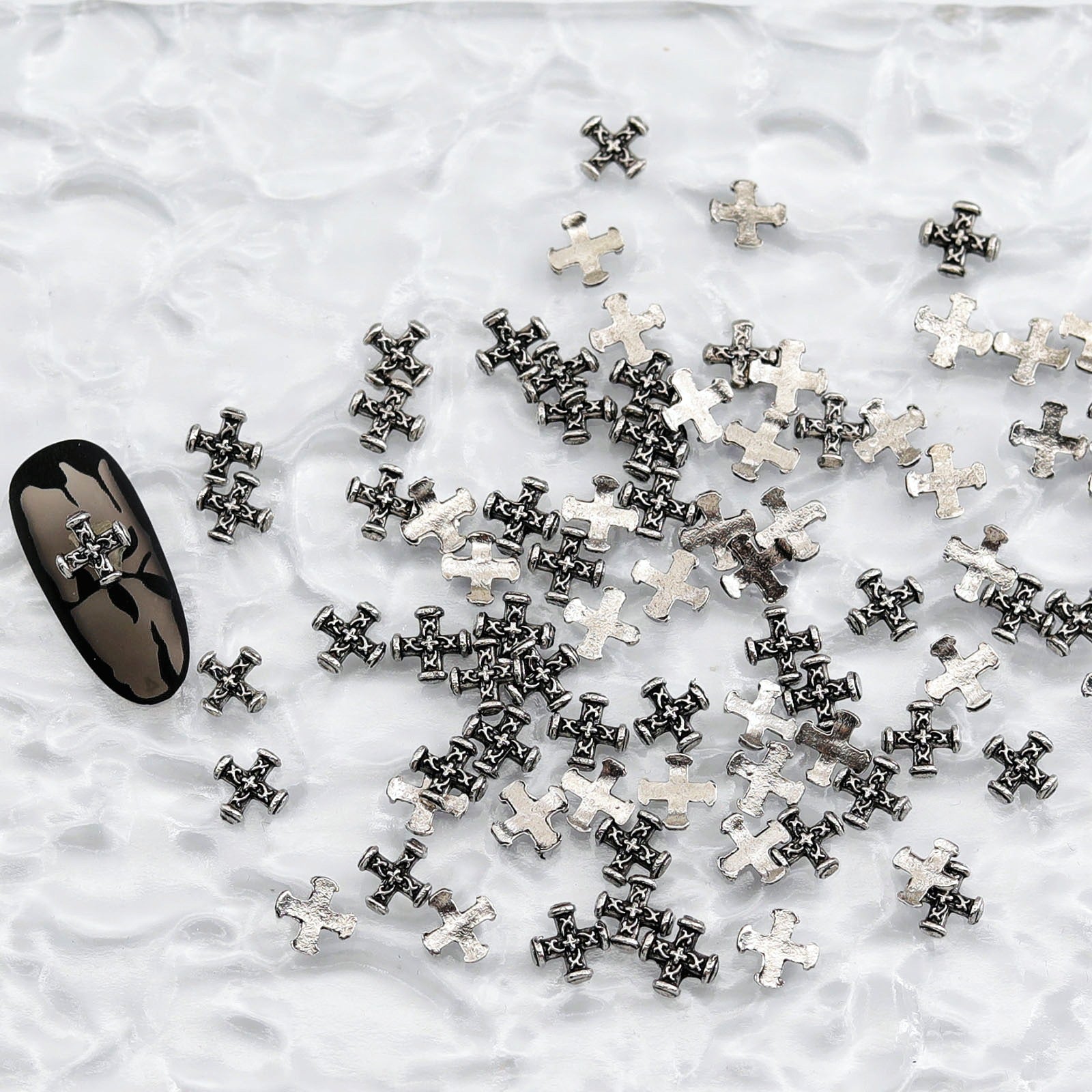 Wholesale 10pcs Retro nail accessories punk style cross dark silver metal nail accessories