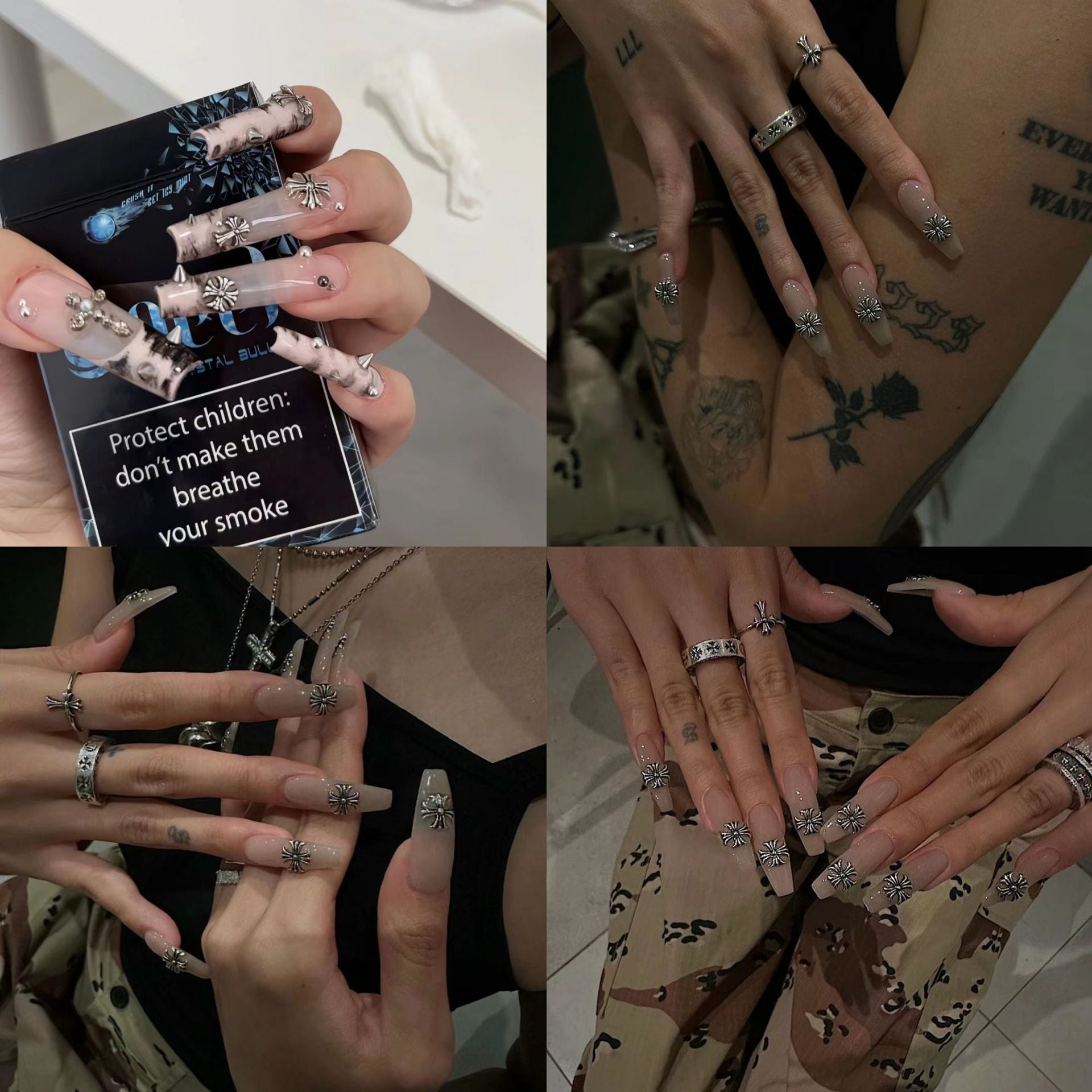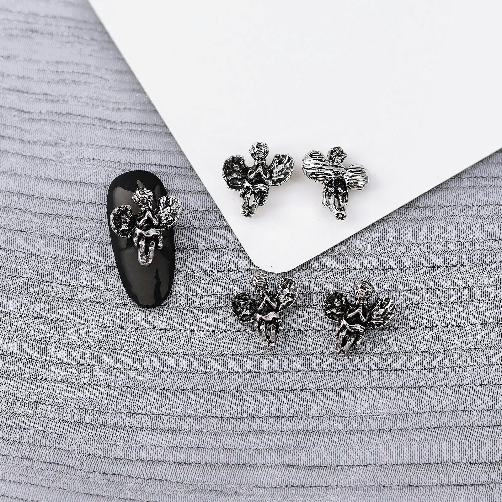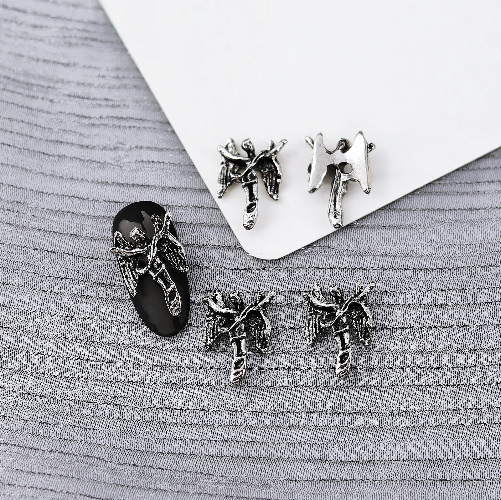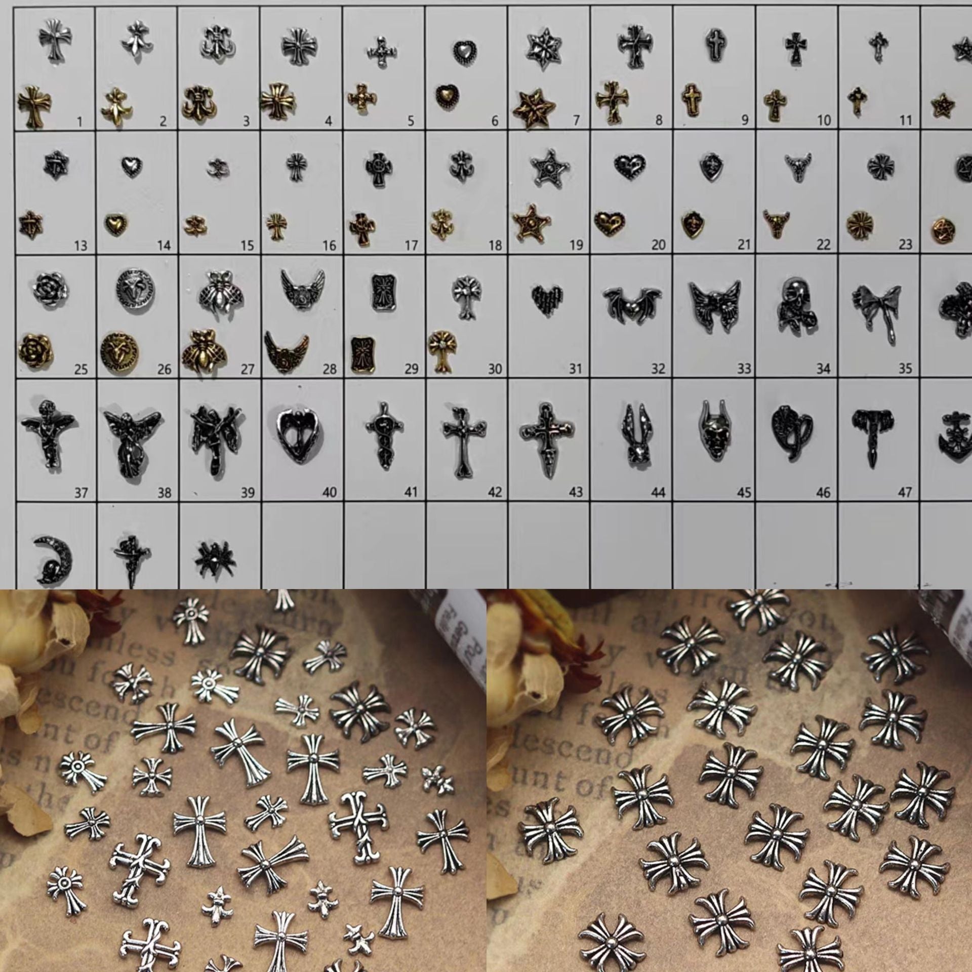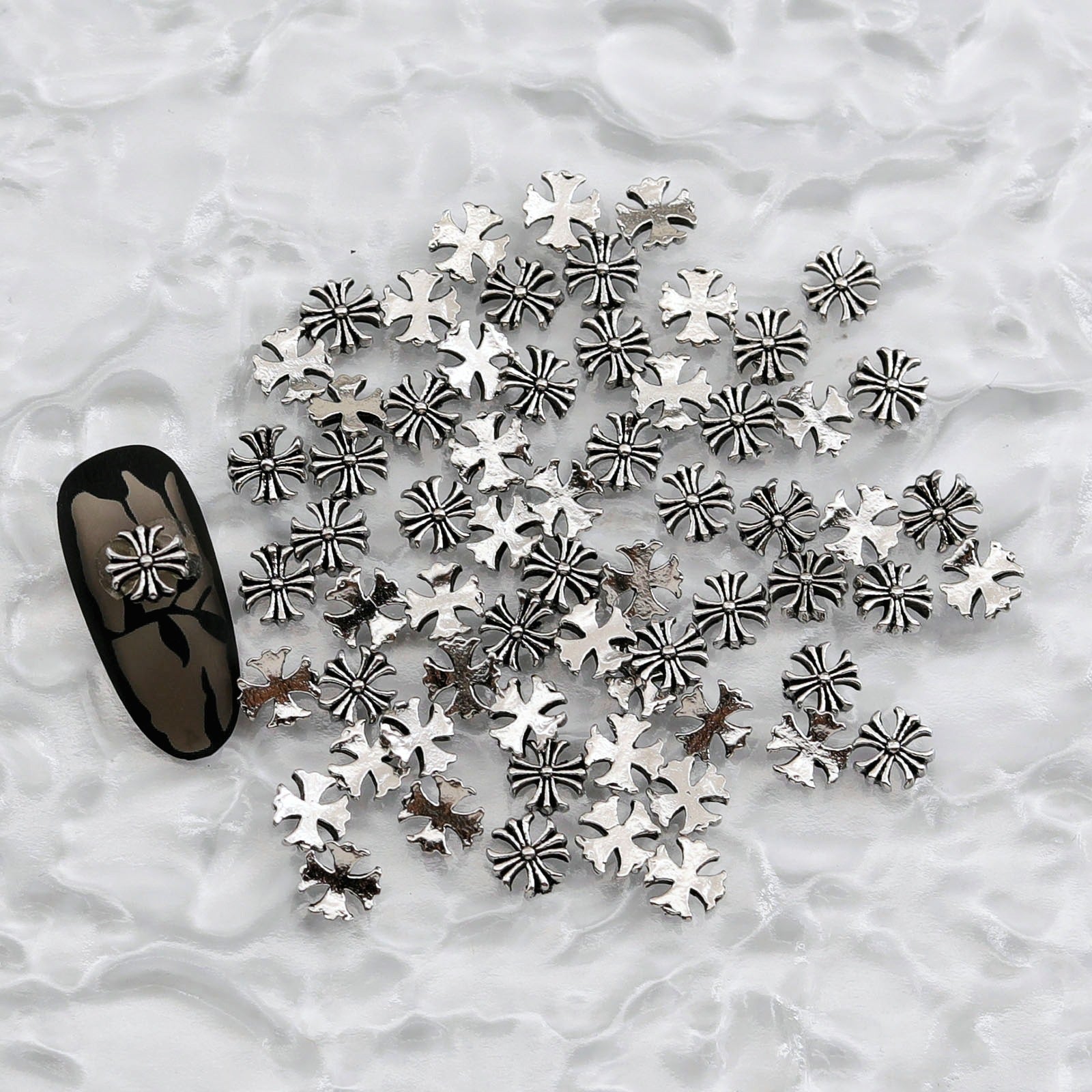 Wholesale 10pcs Retro nail accessories punk style cross dark silver metal nail accessories