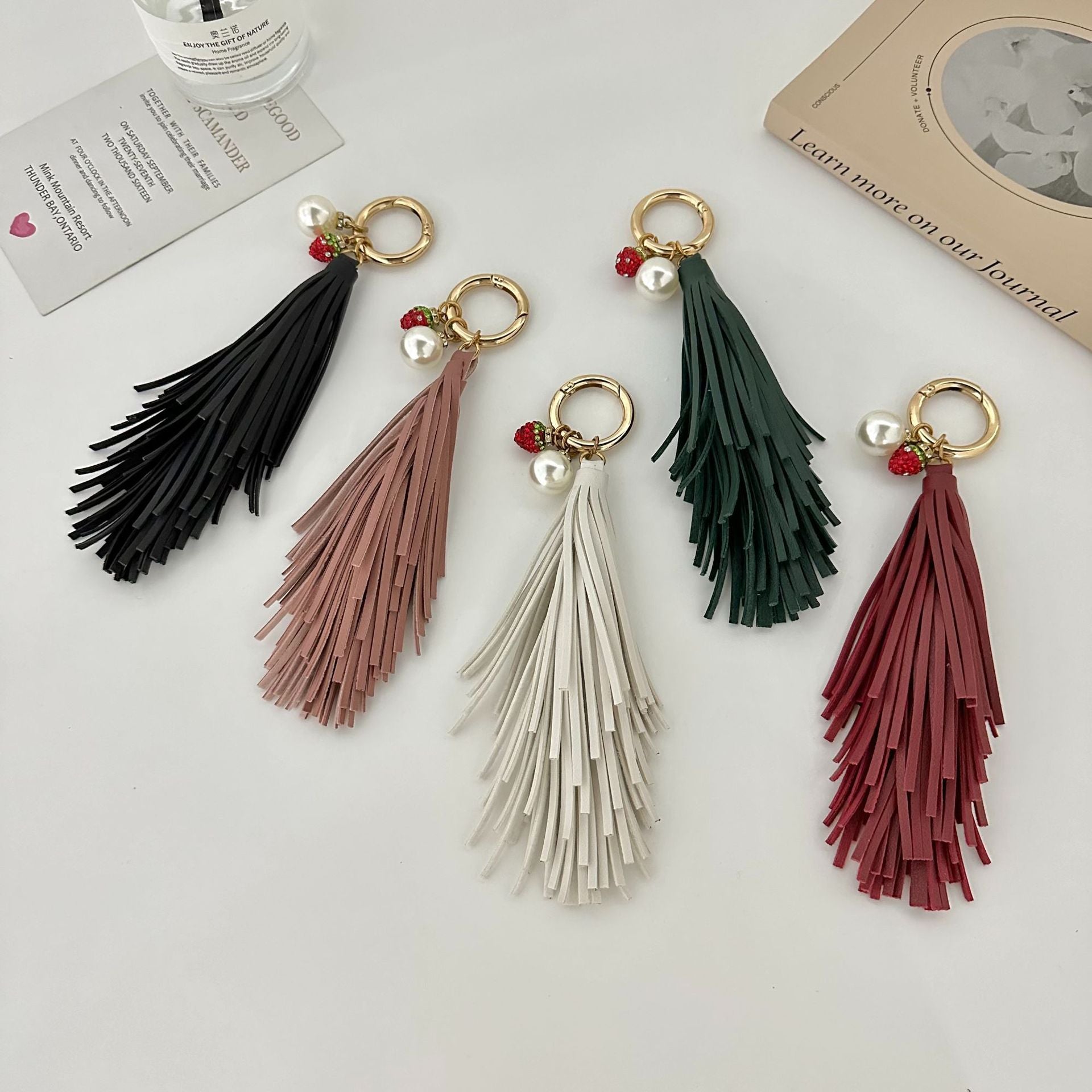 Wholesale 2023 Long Tassel Pearl Pendant Imitation Leather Keychain