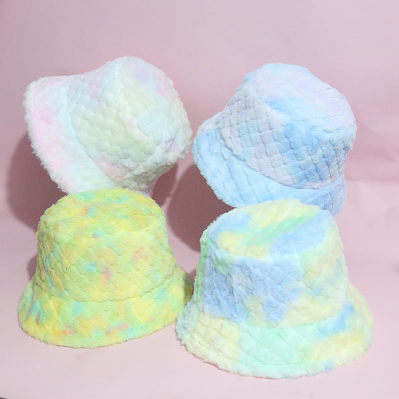 Wholesale 2023 Winter New Plush Diamond Pattern Tie-dye Polyester Hat