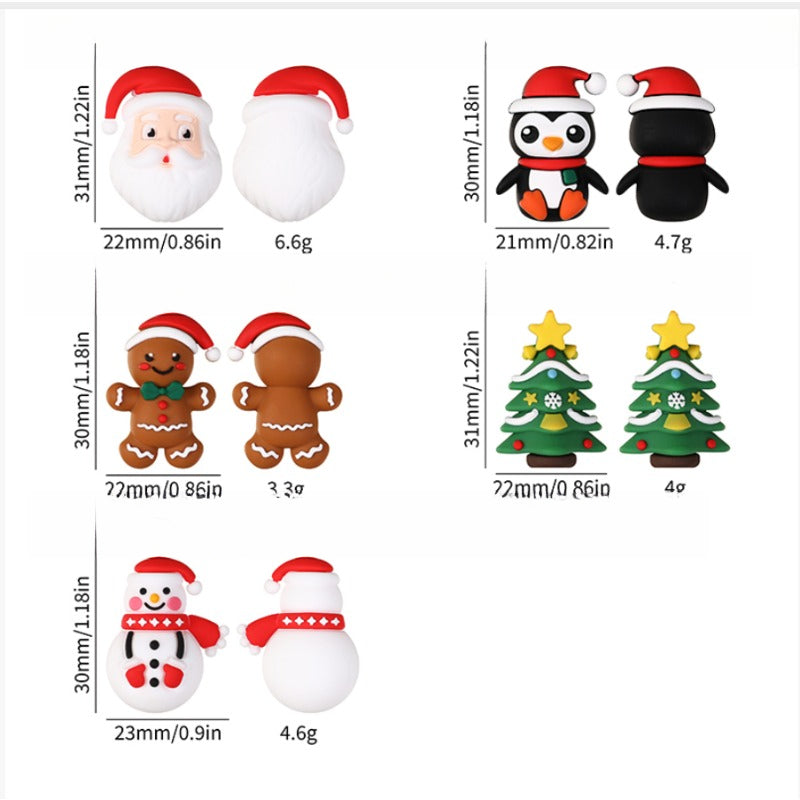Wholesale 10pcs/pack 2D Christmas Cartoon Focus Beads DIY Silicone Beads$5.30 Free Shipping