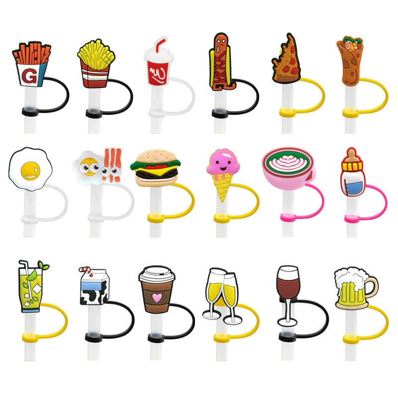 Wholesale 20PCS Cartoon Food and Beverage Silicone Straw Tube Cap Straw Decoration