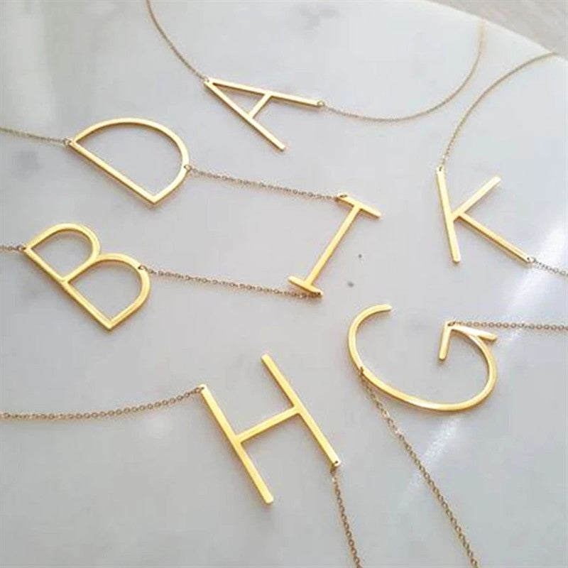 Wholesale 26 English Large Letters Stainless Steel Necklace