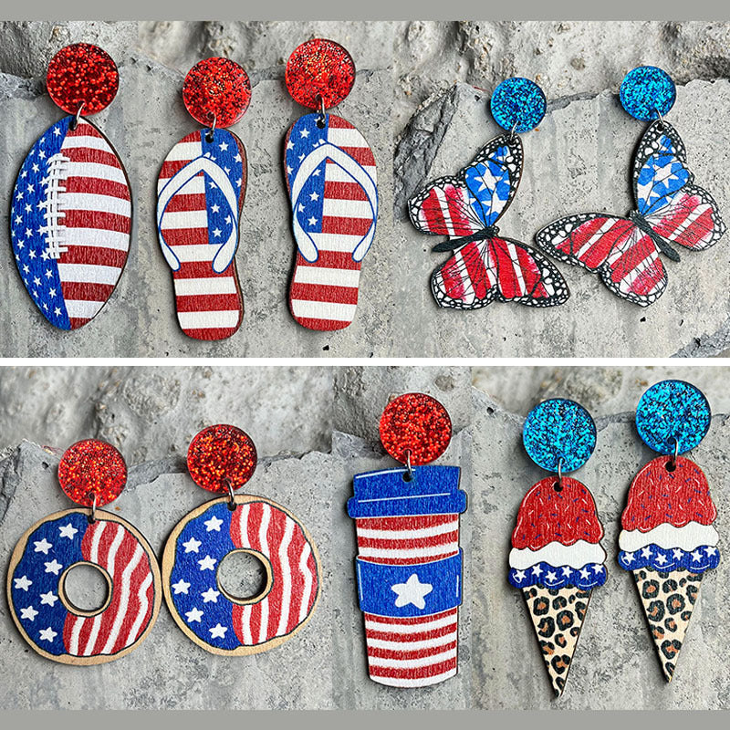 Wholesale 2Pairs/Pack Independence Day Wood Earrings