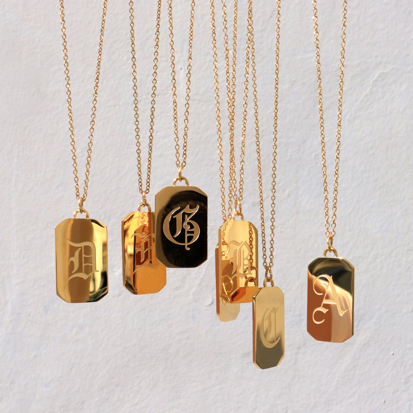 Wholesale 2PCS Stainless Steel Gold Plated Letter Square Necklace