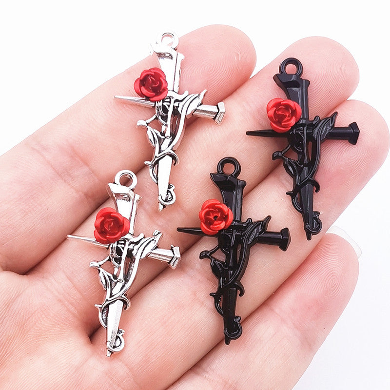 Wholesale 30PCS New Thorn Rose Cross DIY Zinc Alloy Pendant