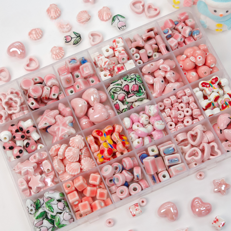 Wholesale 30pcs Pink Ceramic Tulip Cube Skewer Beads