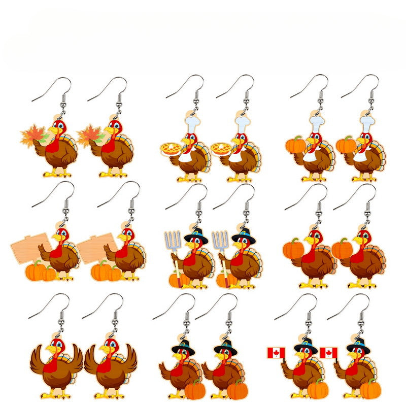 Wholesale 30pcs Thanksgiving Turkey Wooden Earrings Autumn Pizza Turkey Pumpkin Maple Leaf Chinese Restaurant Pendant