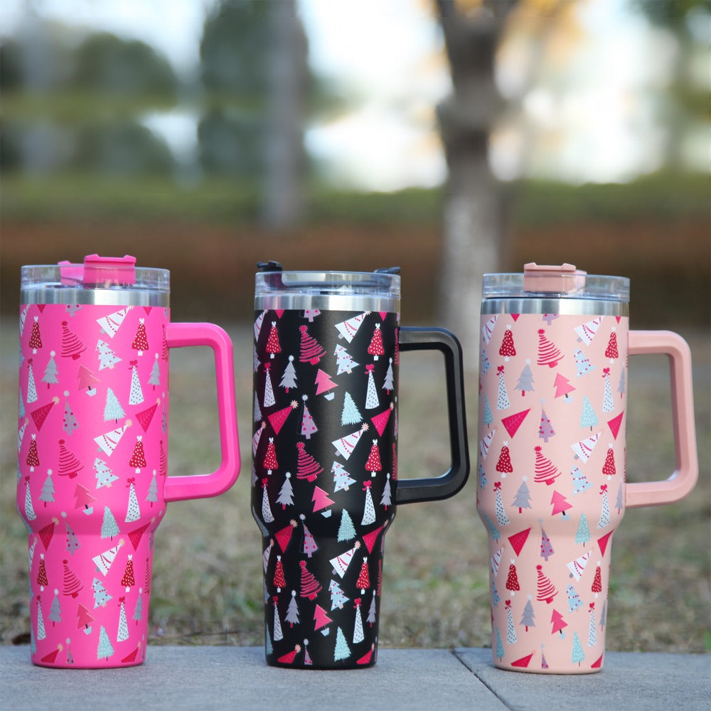 Wholesale 40oz Christmas handle car thermos cup with straw to keep cold Tumbler ice cup