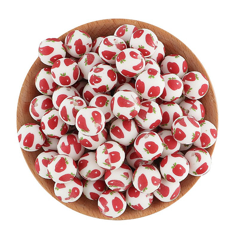 Wholesale 50pcs 15mm Water Transfer Apple Pattern Silicone Beads