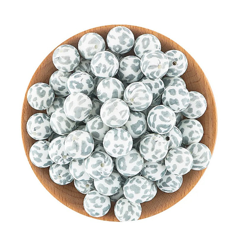 Wholesale 50pcs 15mm Water Transfer Grey Leopard Silicone Beads