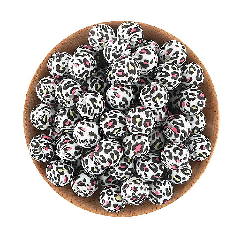 Wholesale 50pcs 15mm Water Transfer Leopard Pattern Silicone Beads