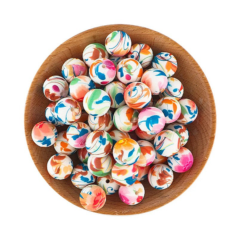 Wholesale 50pcs 15mm Water Transfer Orchid Pattern Silicone Beads