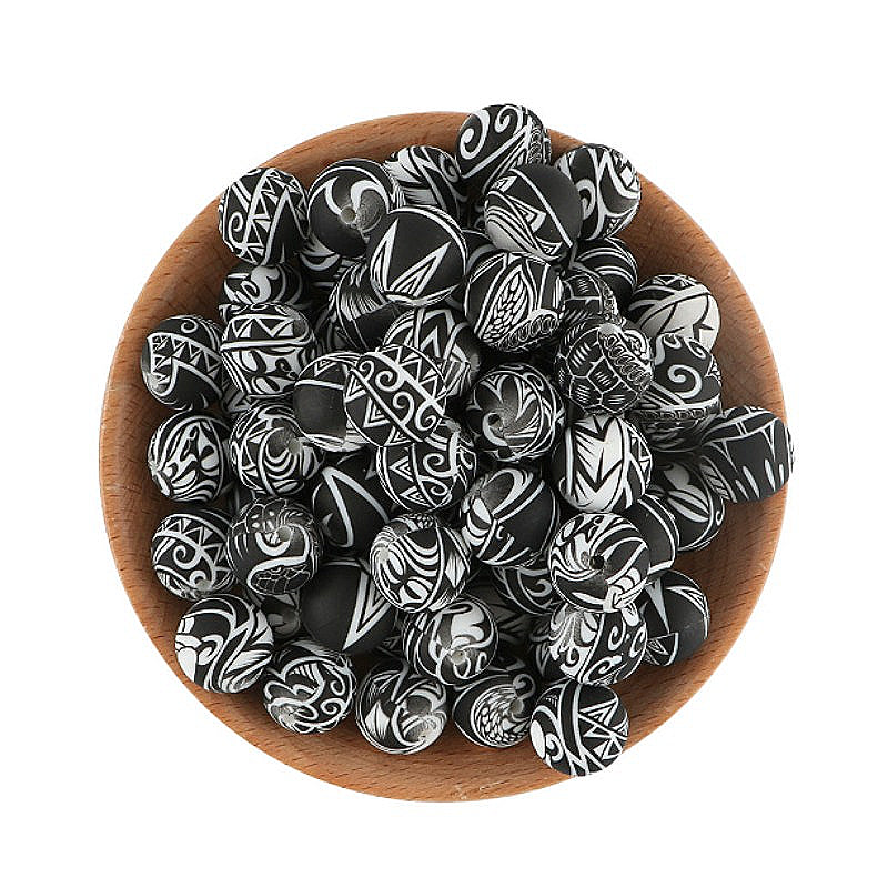 Wholesale 50pcs 15mm Water Transfer Pattern Silicone Beads